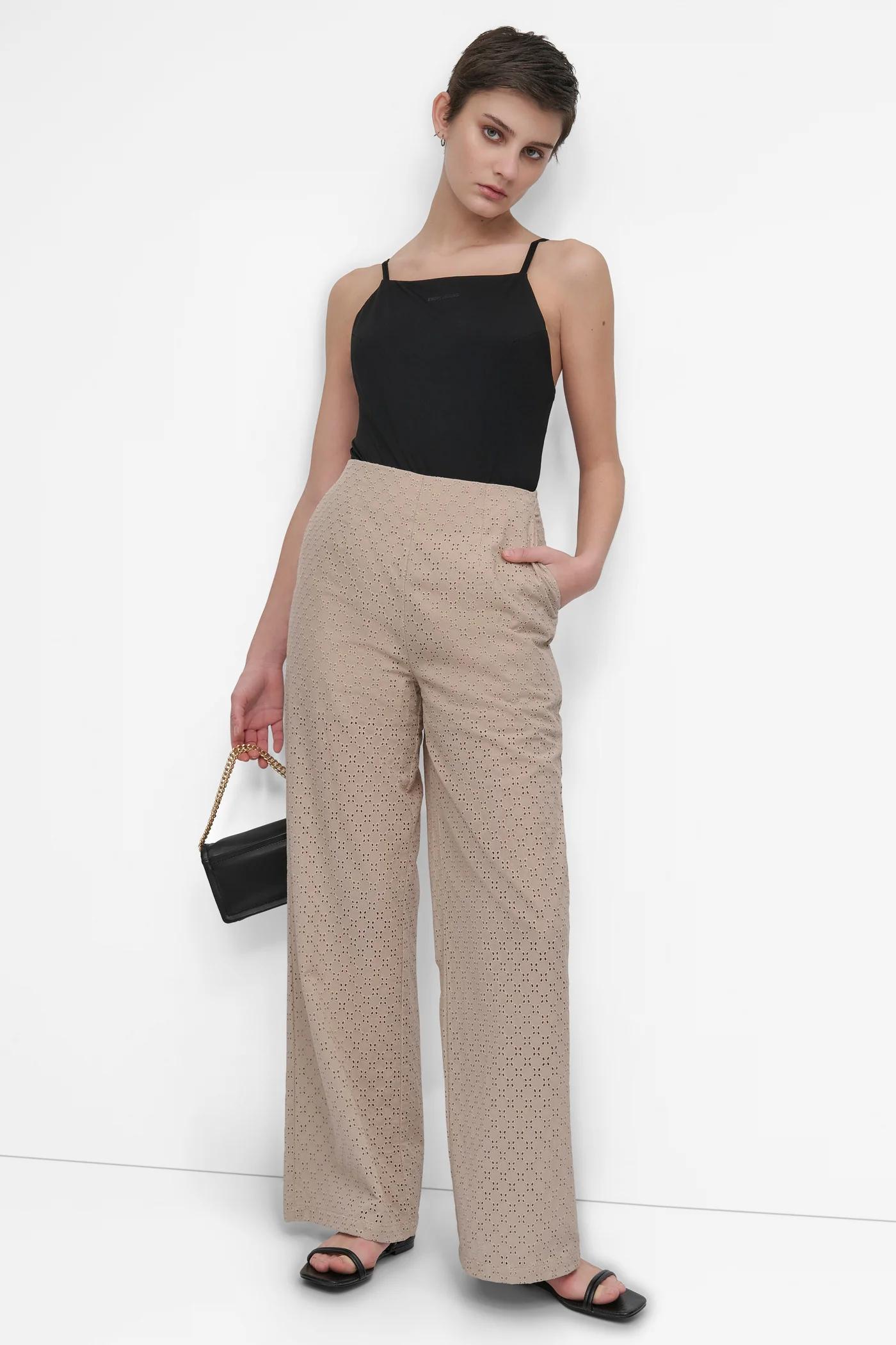 EYELET HIGH WAIST WIDE LEG TROUSER