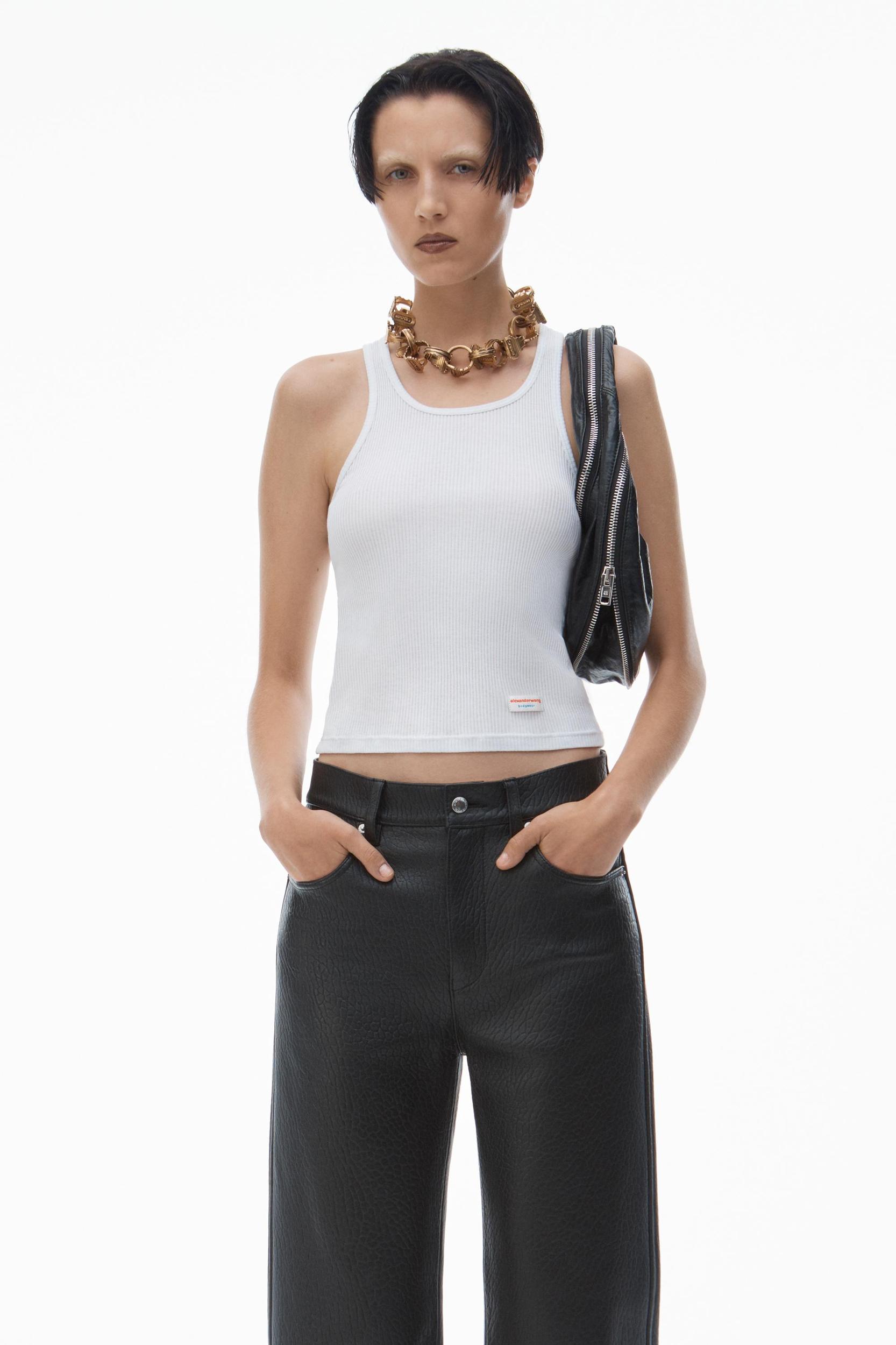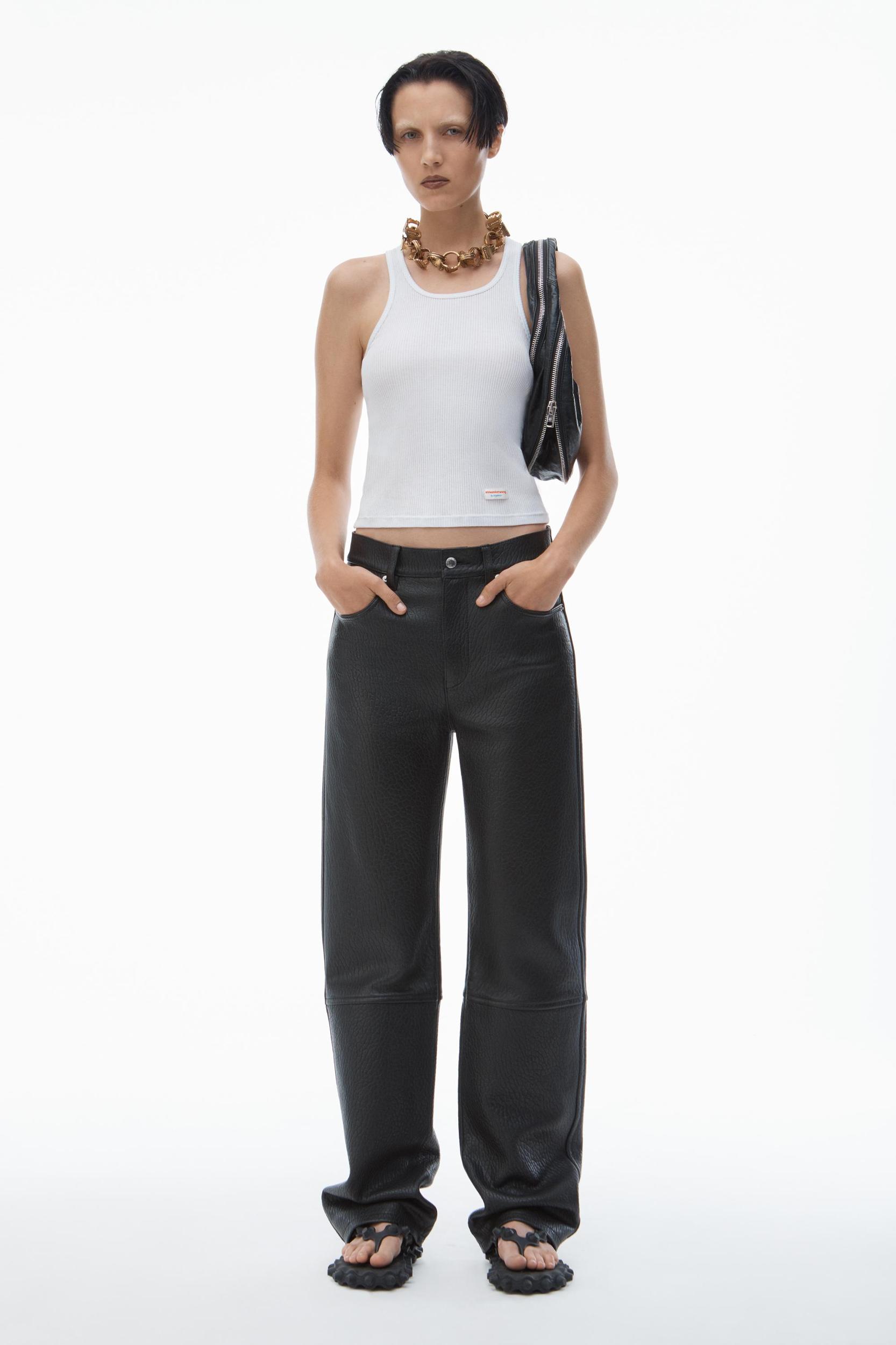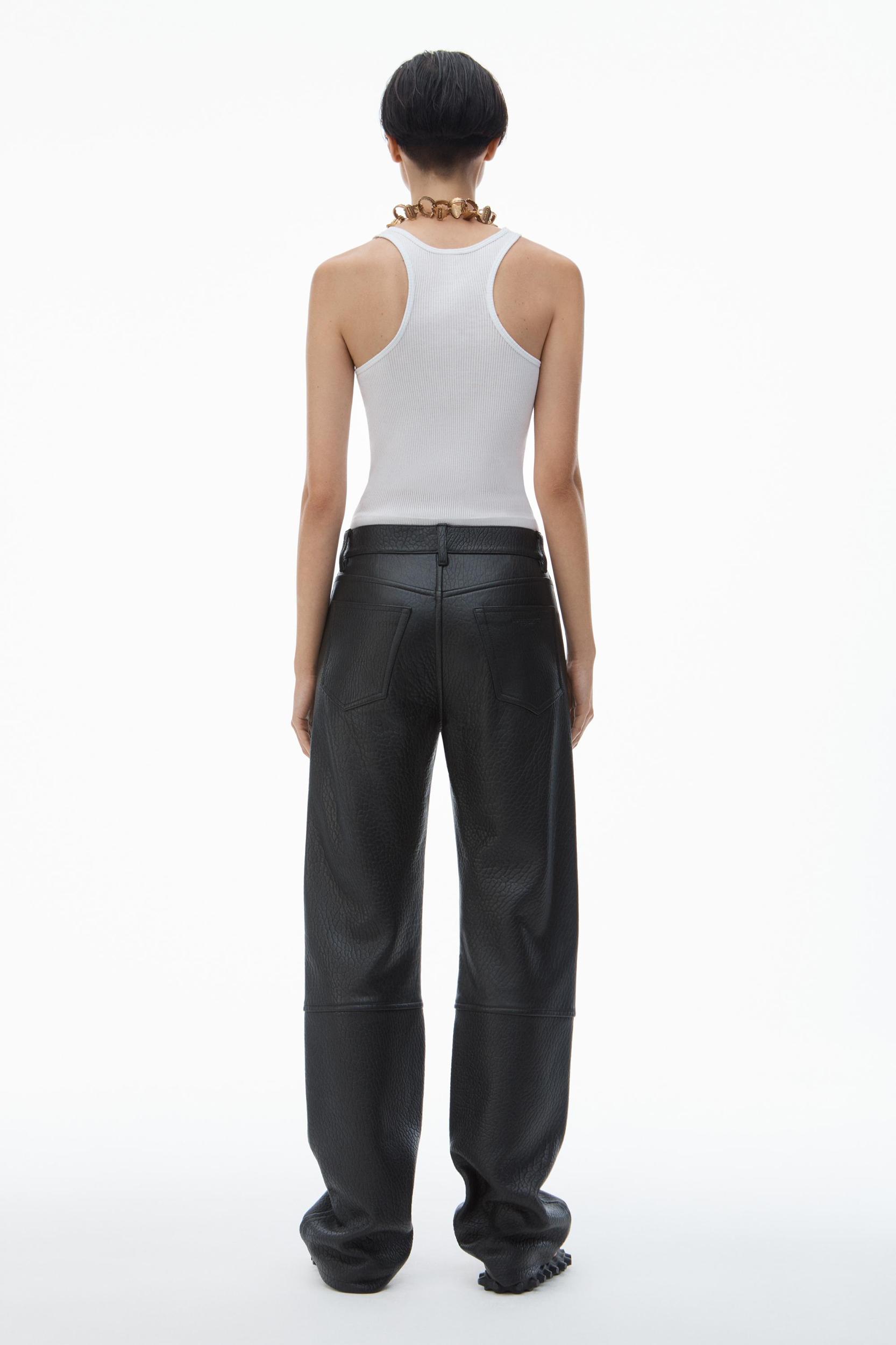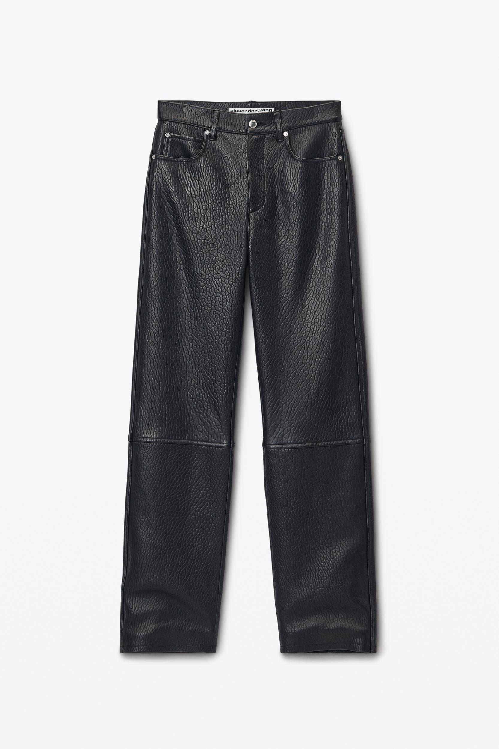 Crafted of primal Nappa leather and cut with a stacked-leg design, these mid-rise lined pants feature belt loops, five-pocket styling, and a logo patch at the back. Accentuated seam details complemented by branded rivets and shanks complete this style.