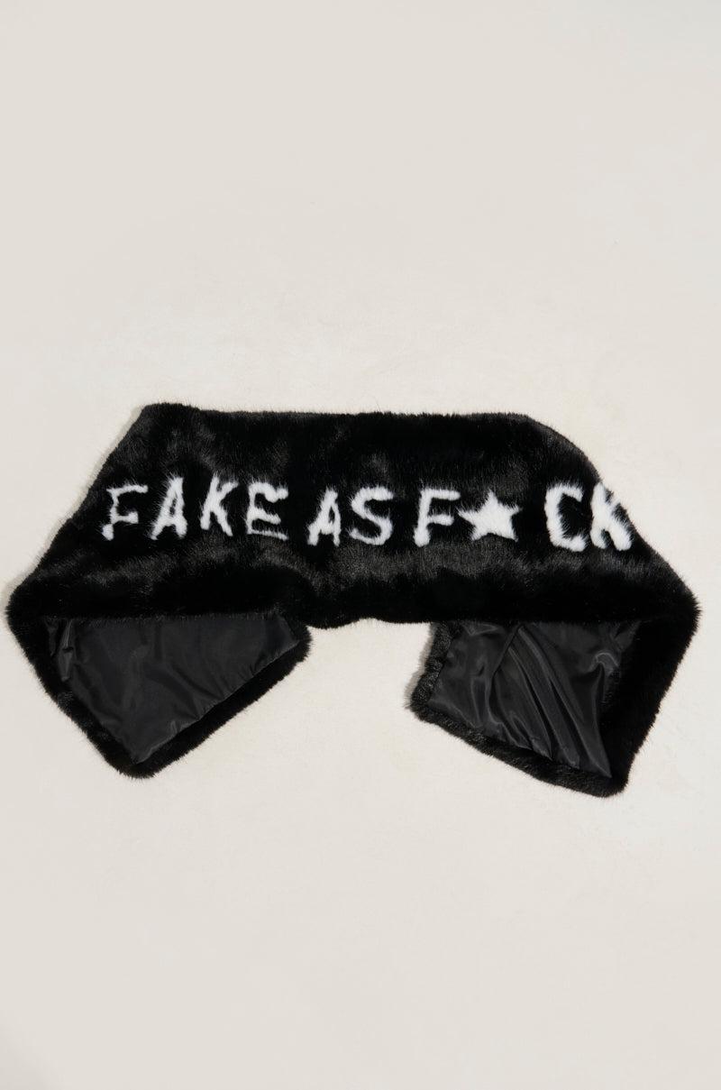 Fake it ‘till you make it. The AKIRA Label F*ck It Faux Fur Scarf is a statement-maker to say the very least. Crafted from silky satin and lavishly luxe faux fur, this witty winter accessory features a “fake as f*ck" graphic and an oversized fit to keep you snug and sassy all season long. Pair it with the I’m Fake Ultra Oversized Fur Tote for a cheeky, coordinated look. - Fur: 100% Polyester, Lining: 100% Polyester- Dry Clean Only- Imported (all measurements approximate from size O/S)- 66” Length- 12” WidthProduct ID: 468846