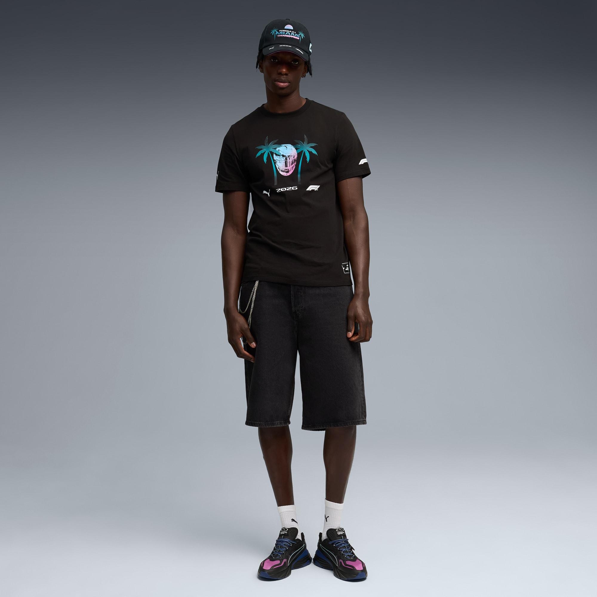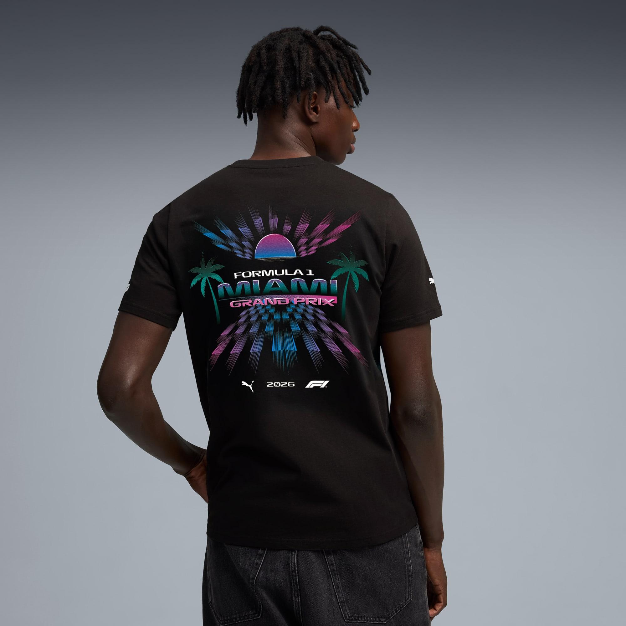 descriptionThese pieces are built for true motorsport enthusiasts, combining premium materials, dynamic design, and iconic team branding. Show your love for Miami in this F1® tee, channeling the excitement of the track into a bold graphic design.Style: 634540_01Color: PUMA Blackmeasure & sizeModel informationModel is 6' 2" tall and is wearing size M.features & benefitsMade with at least 20% recycled cotton.detailsFit: RegularNeck: Crew neckShort sleevesLength: RegularF1® and PUMA branding detailsmaterials & careMaterial informationShell: 100% cottonRib: 71% cotton, 29% polyesterCare instructionsExclusive of DecorationUse only mild detergentWash and iron inside outDo not iron printWash with similar colours