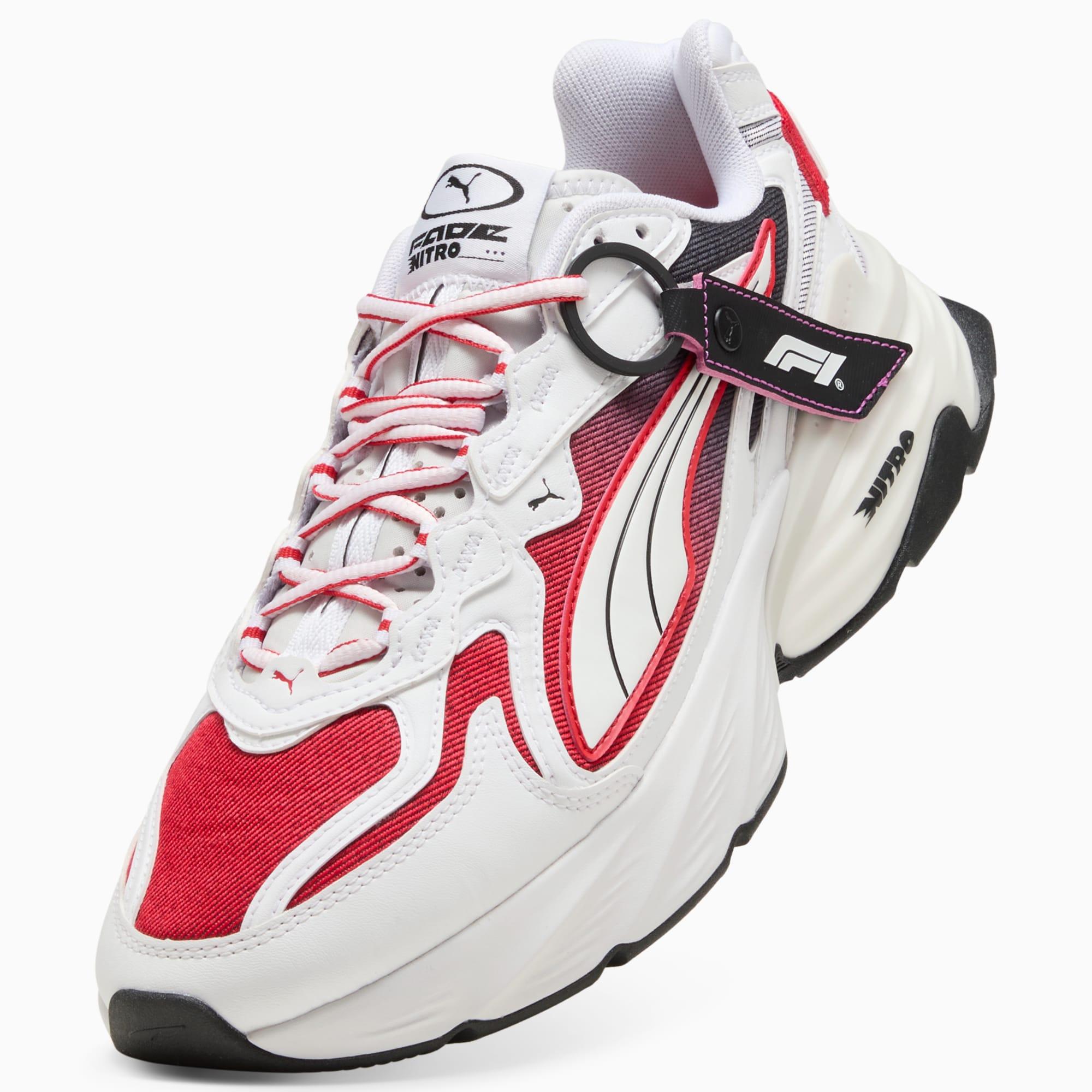 descriptionThe F1® PUMA Fade Sneakers are built for true motorsport enthusiasts. Inspired by the speed and energy of Formula 1®, they blend performance and heritage, bringing the excitement of the track to everyday wear. Represent your passion for F1® on race day or any day with this speed-obsessed sneaker design.Style: 309414_02Color: PUMA White-Pop Redfeatures & benefitsSOFTFOAM+: Step-in comfort sockliner is designed to provide soft cushioning thanks to its extra thick heeldetailsWidth: RegularToe type: RoundedClosure: LacesHeel type: FlatMesh ventilationFuturistic aestheticCo-branding detailsmaterials & careMaterial informationMidsole: 100% SyntheticSockliner: 100% TextileOutsole: 100% RubberUpper: 63% Synthetic, 37% TextileLining: 100% Textile