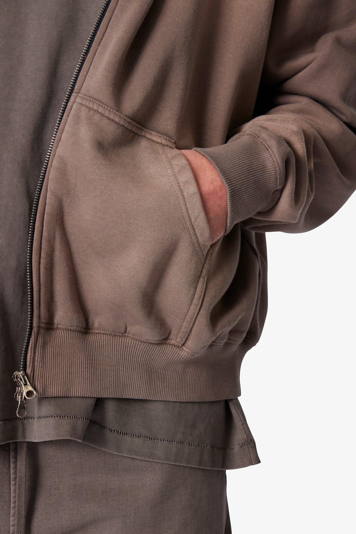 the Faded Basic Zip Hoodie is designed from 100% cotton fleece, with a T8 metal zipper at the chest, a kangaroo pocket that is split onto both sides, and is finished with a faded garment wash. details relaxed fit 100% cotton model is 6’0, 140 lbs and wearing a size medium