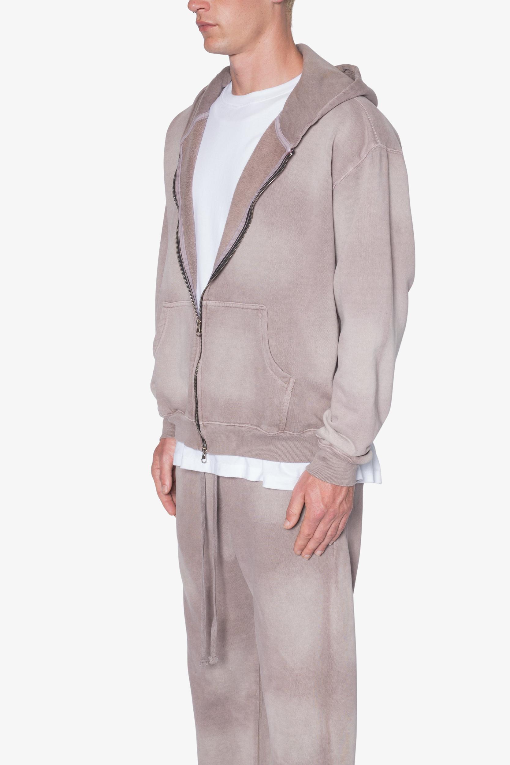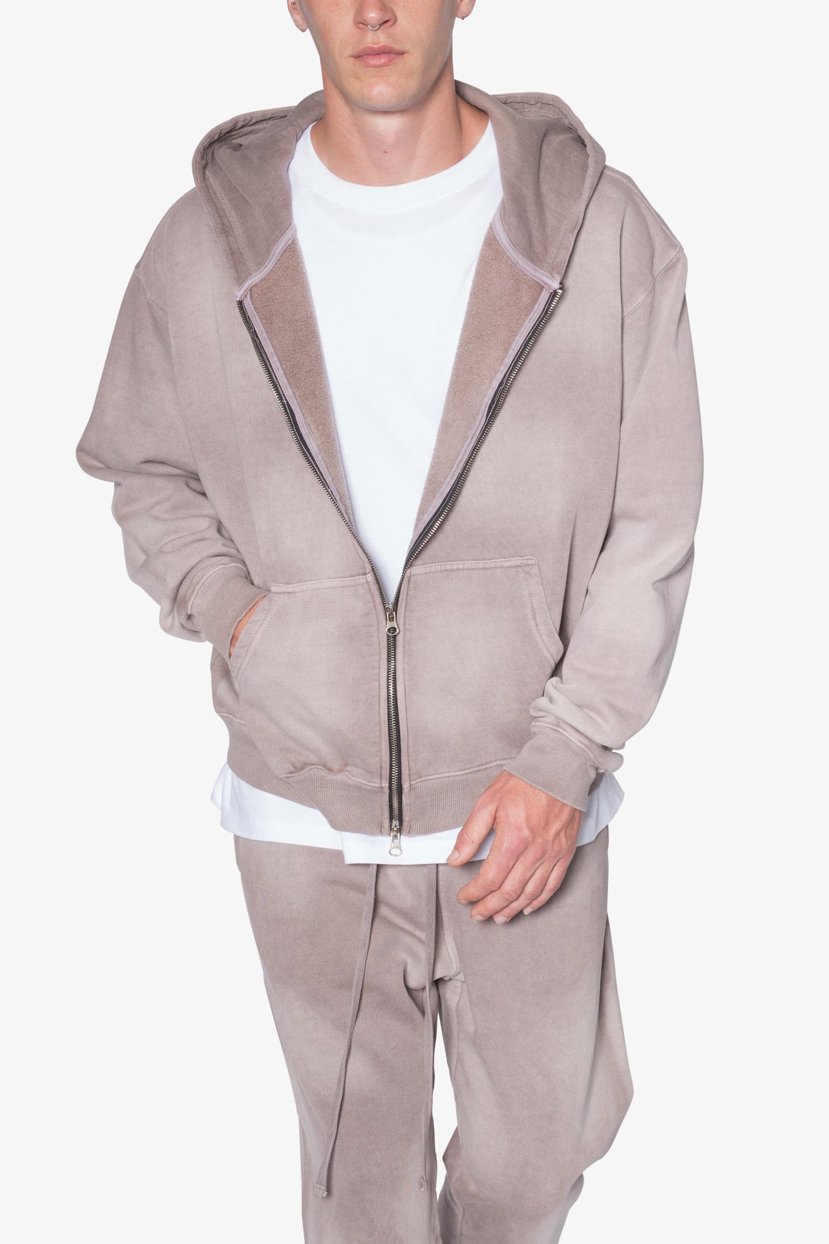 the Faded Basic Zip Hoodie is designed from 100% cotton french terry, with a T8 metal zipper at the chest, a kangaroo pocket that is split onto both sides, and is finished with a faded garment wash. details relaxed fit 100% cotton model is 6’0, 140 lbs and wearing a size medium