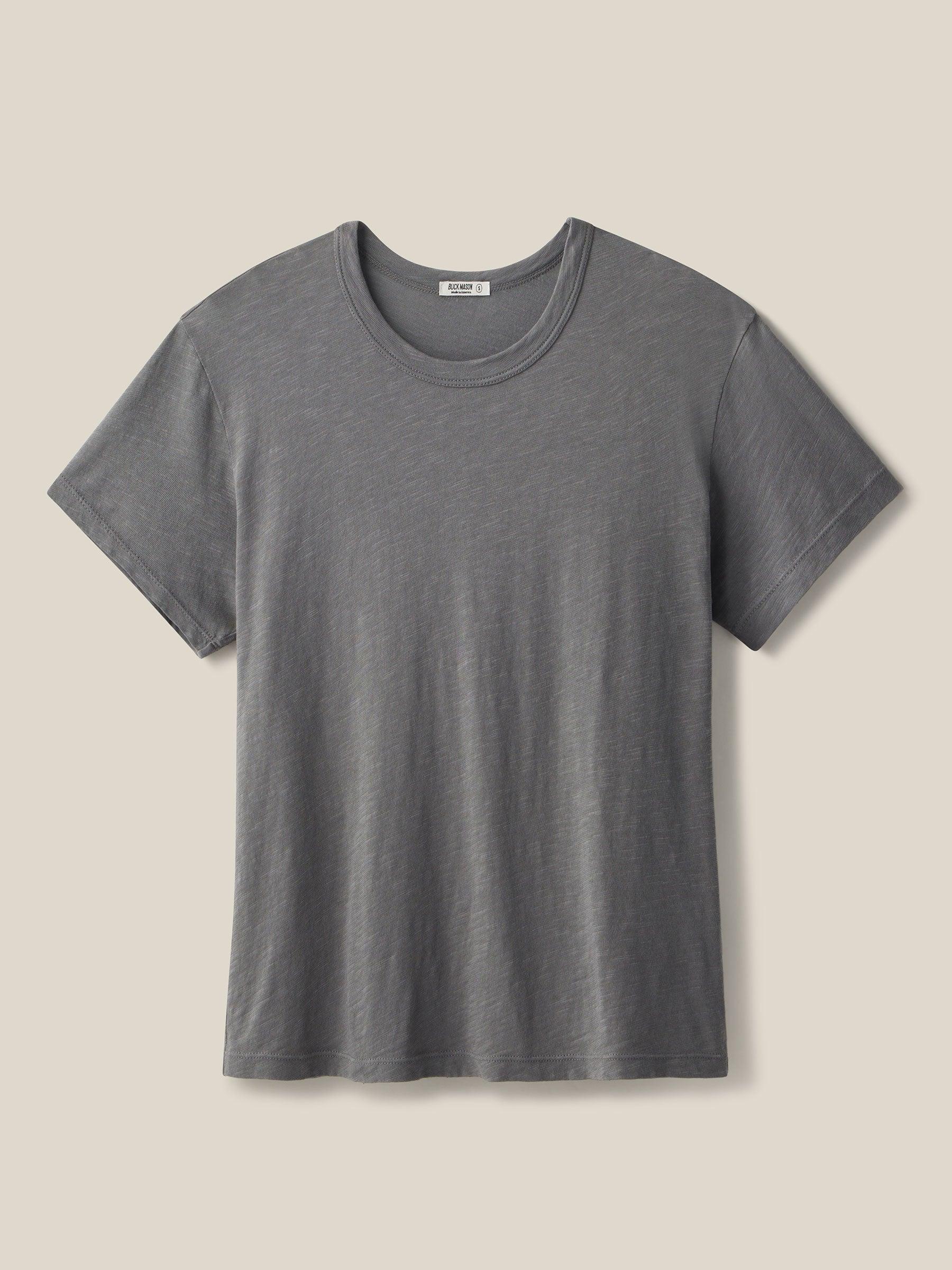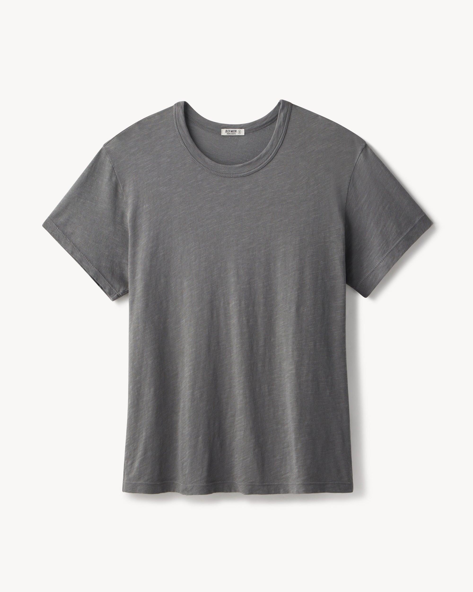 Classic fit short sleeve crewneck tee with a straight hem, cut from a lightweight slub cotton.