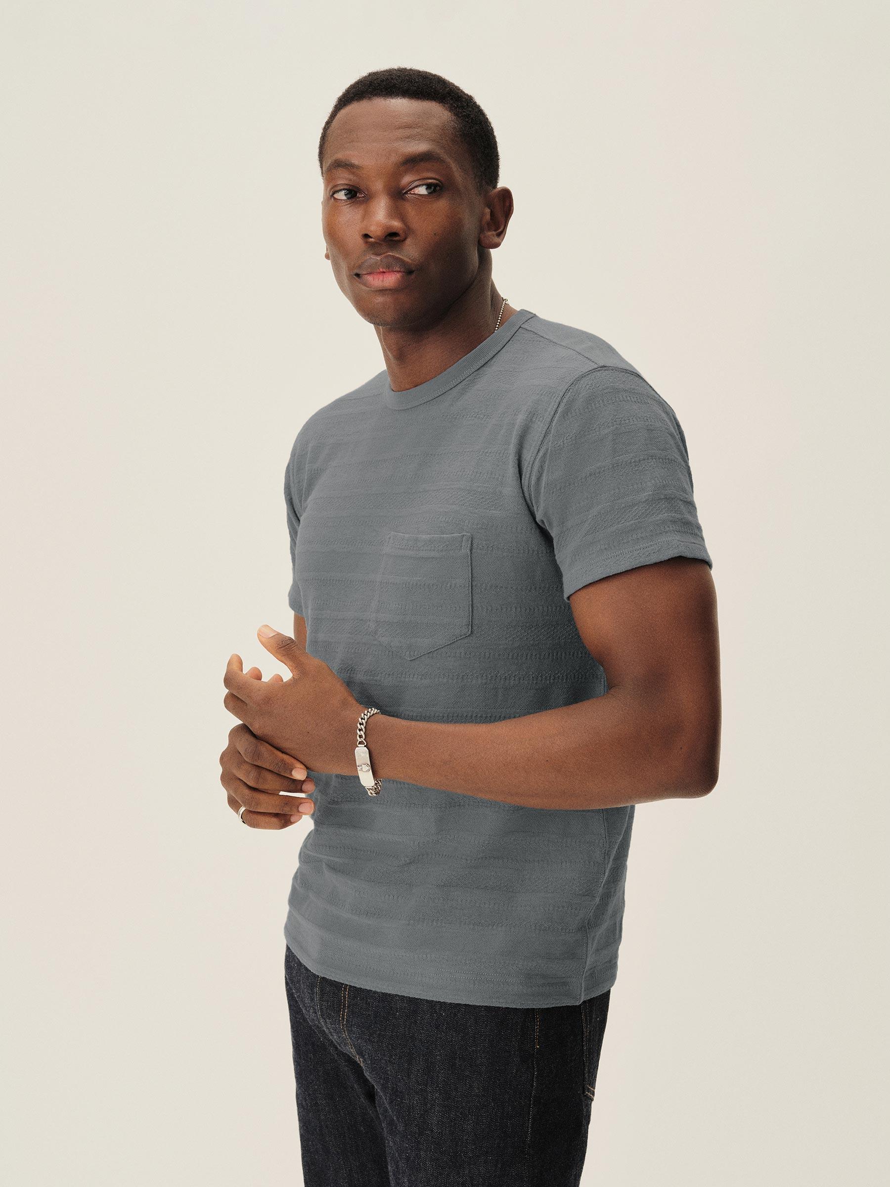 Classic fit pocket tee in midweight cotton with tonal jacquard patterning.