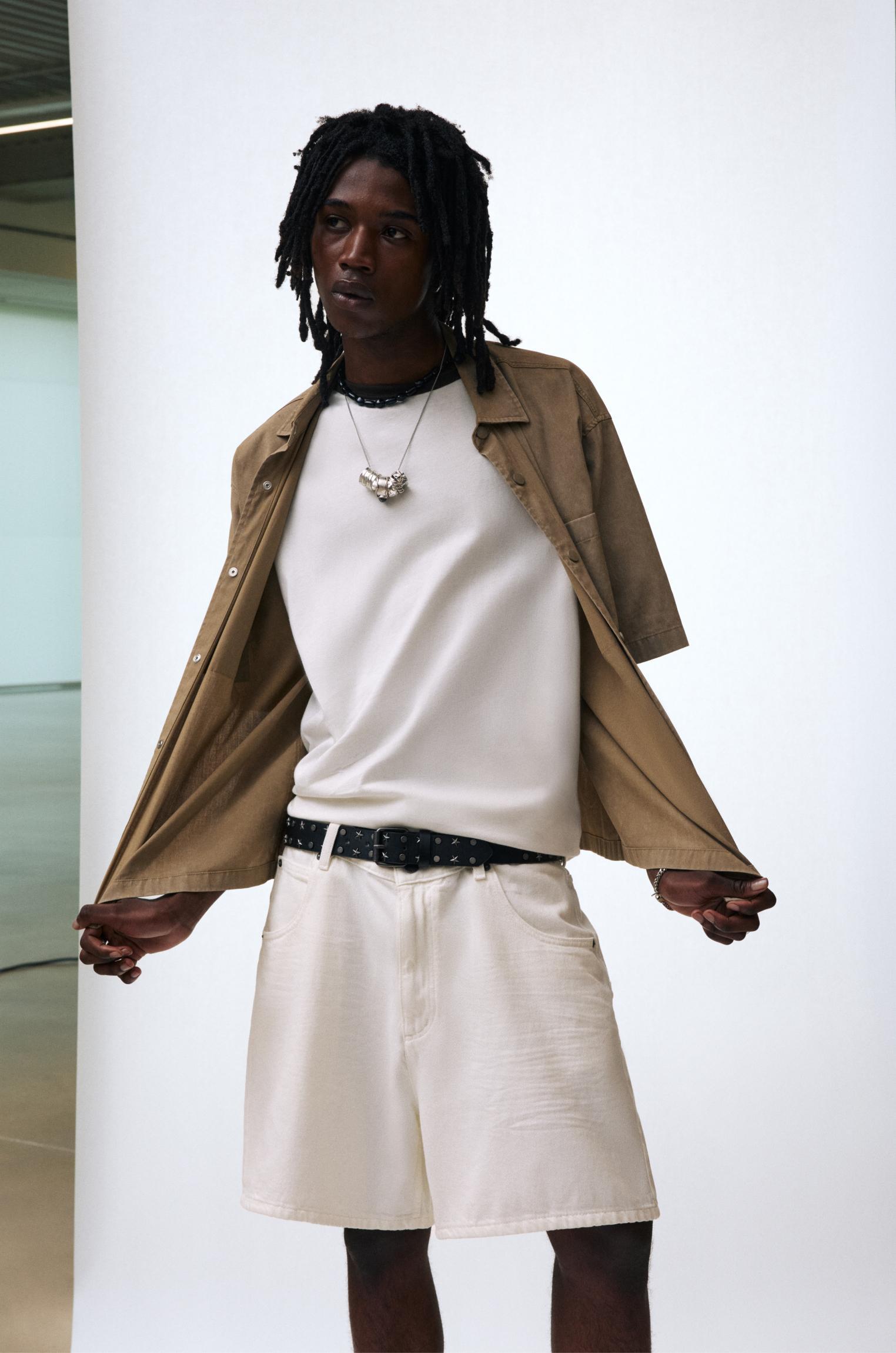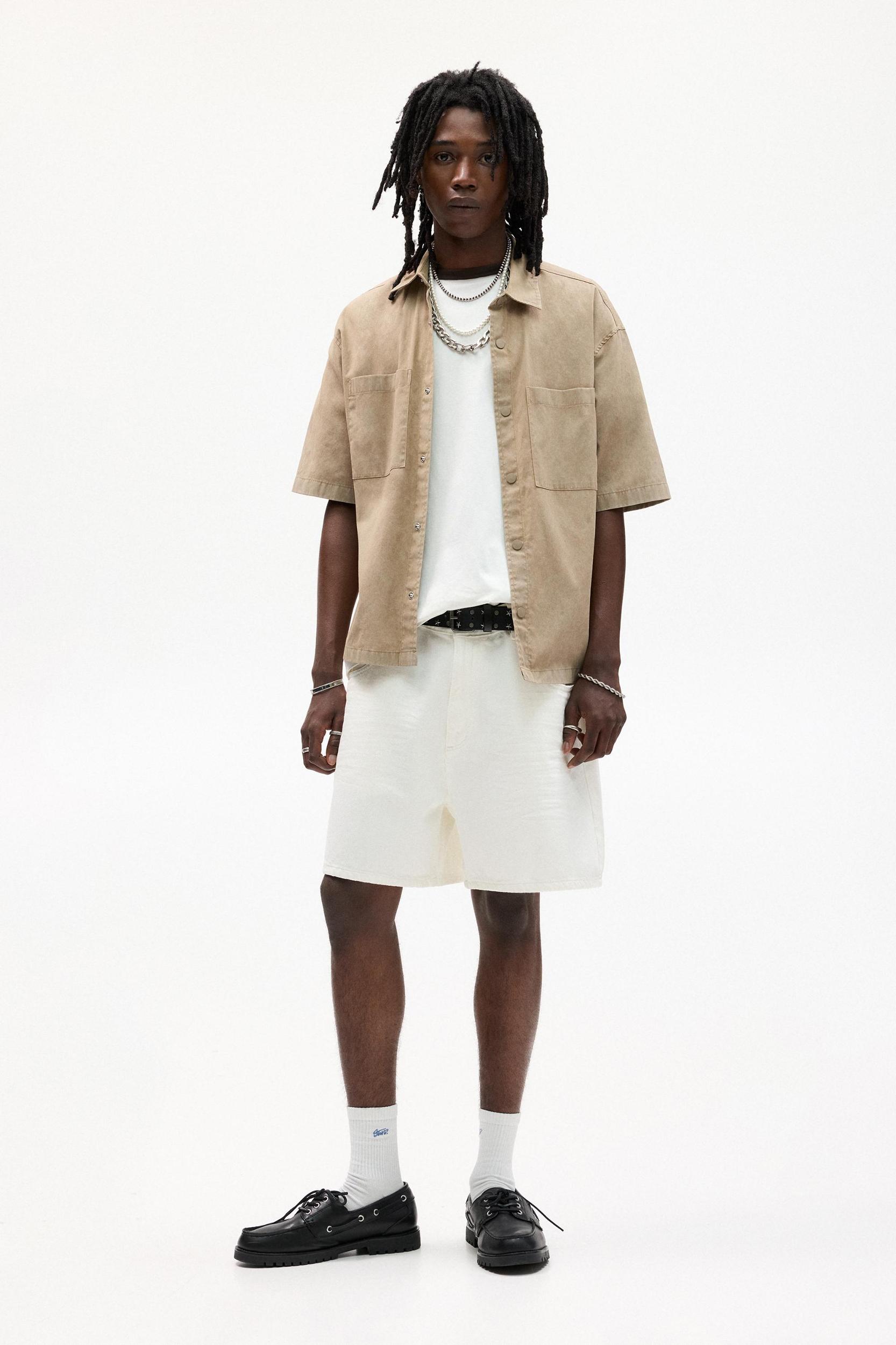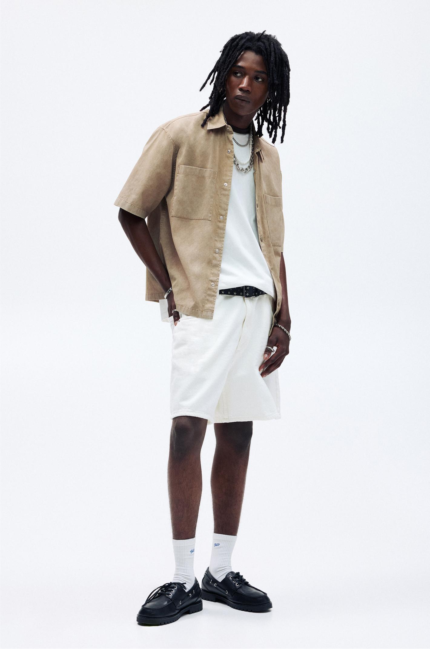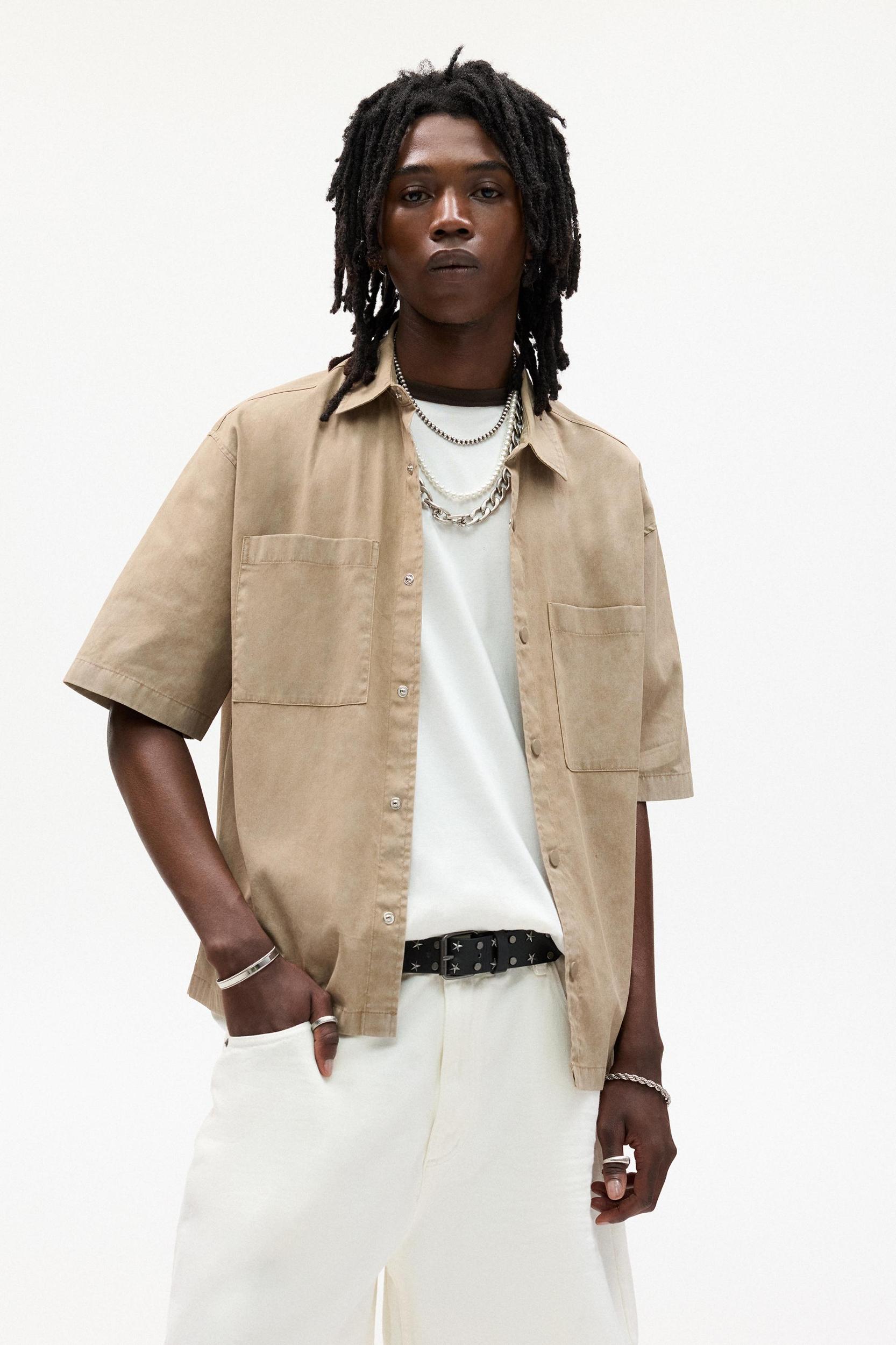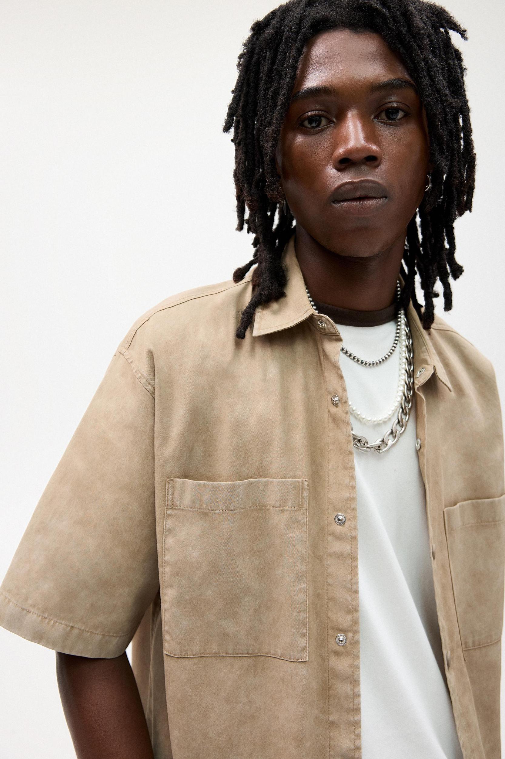 Short sleeve shirt with a washed finish, front pockets and a button-up front.