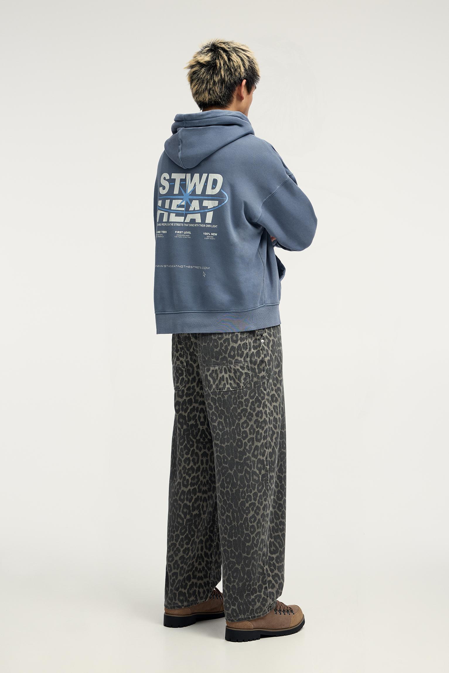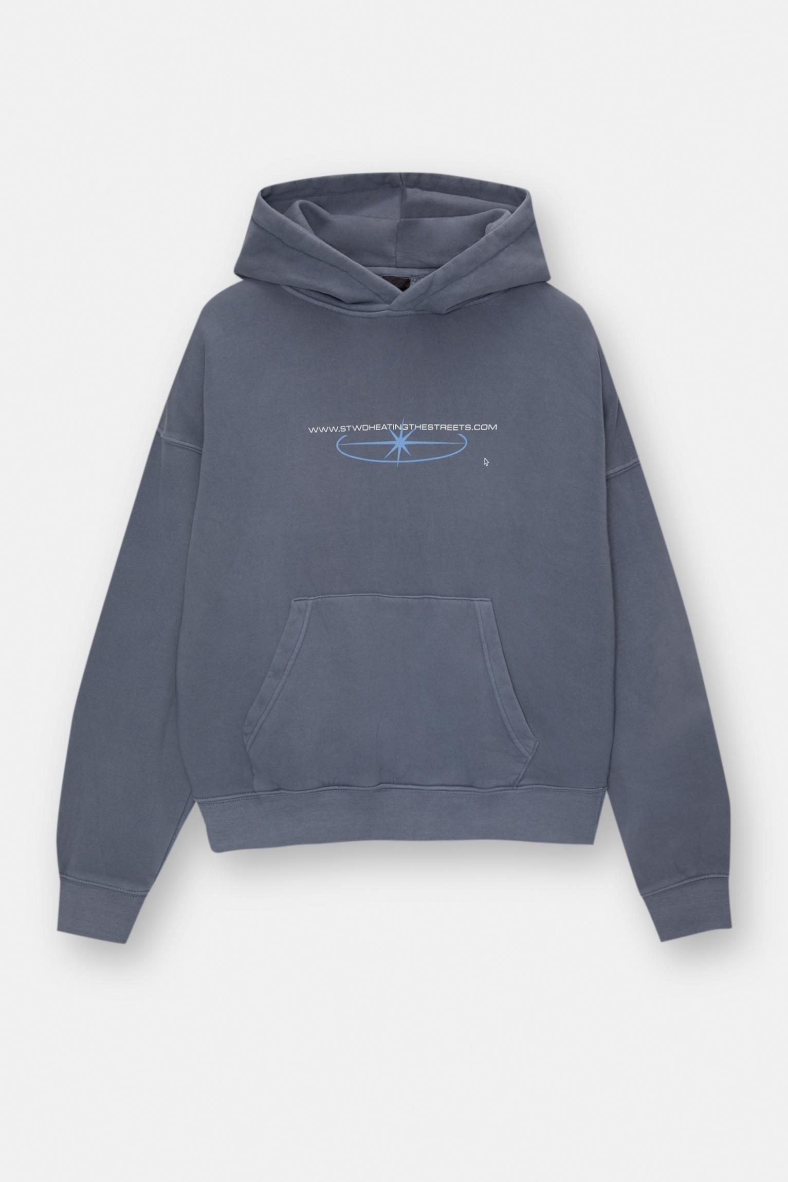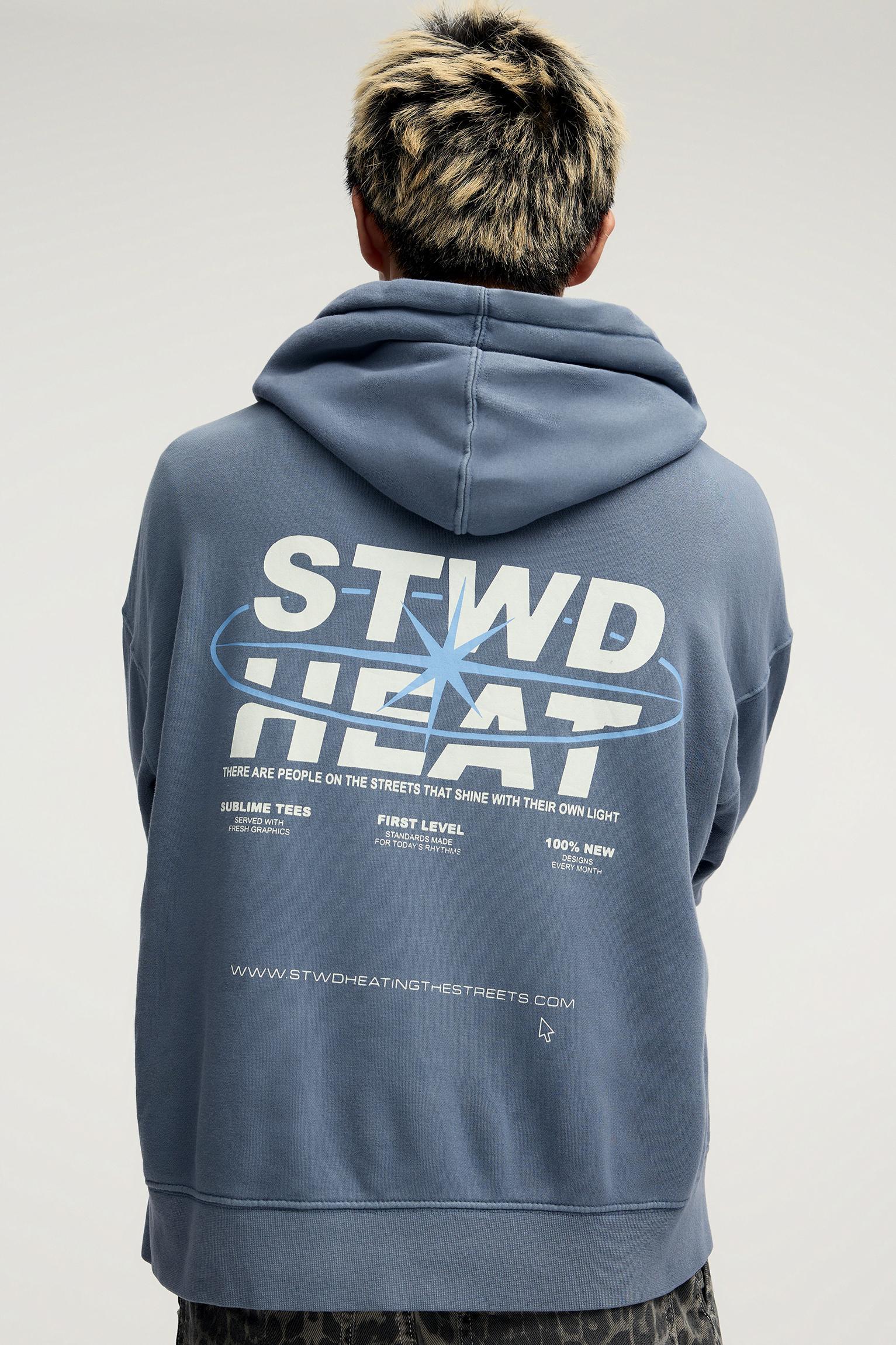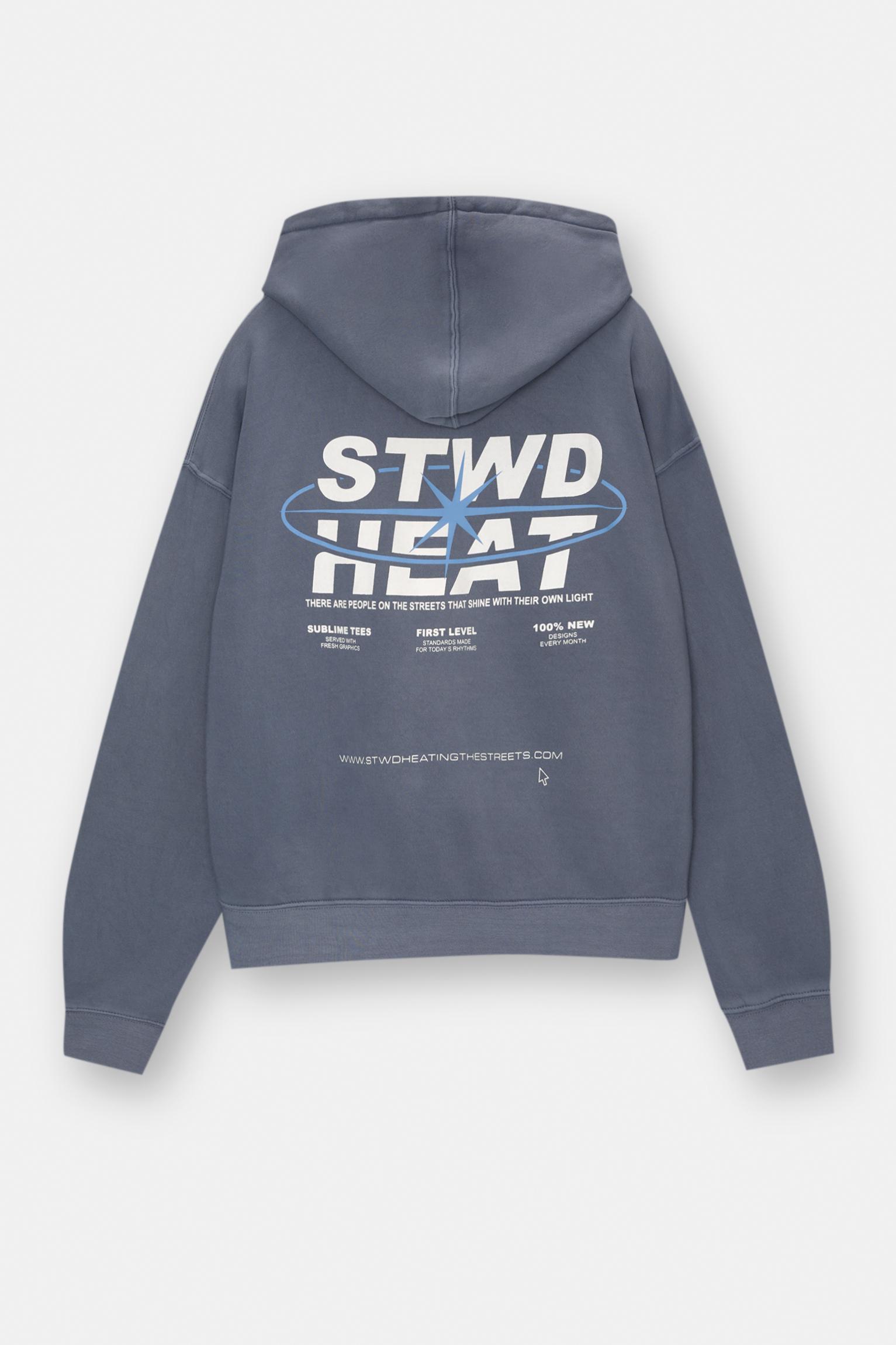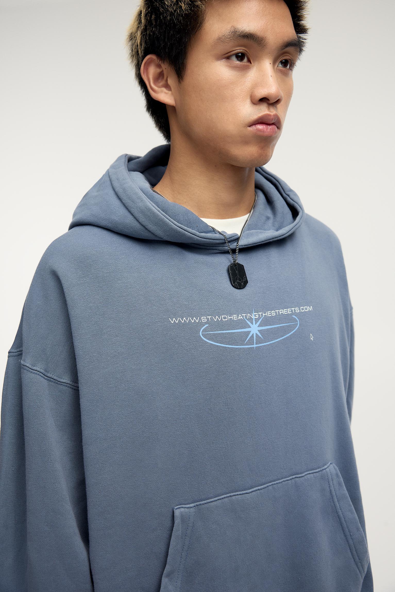 Blue oversize hoodie with a faded finish, contrast STWD graphic and a front pouch pocket. Made of cotton.