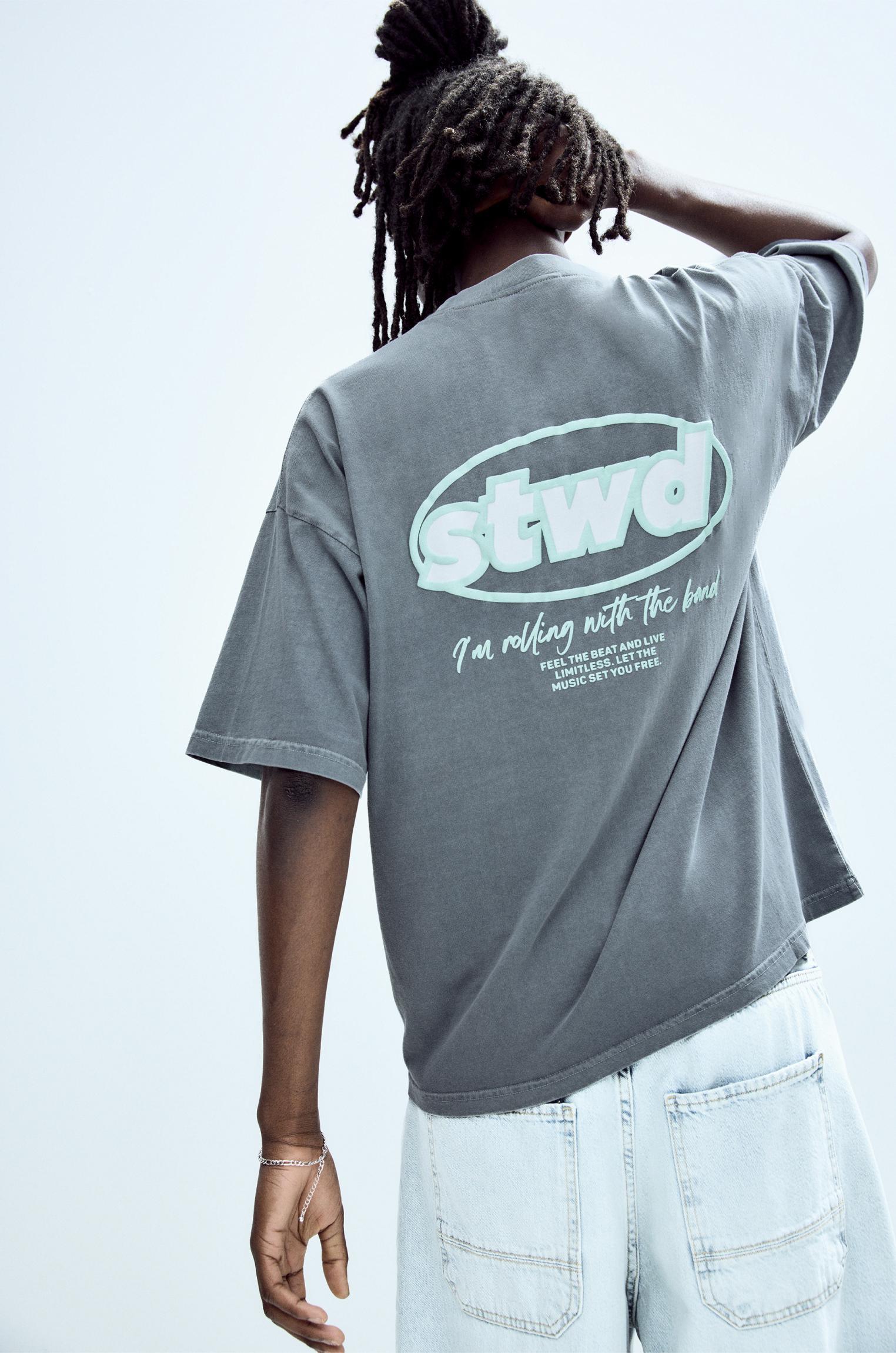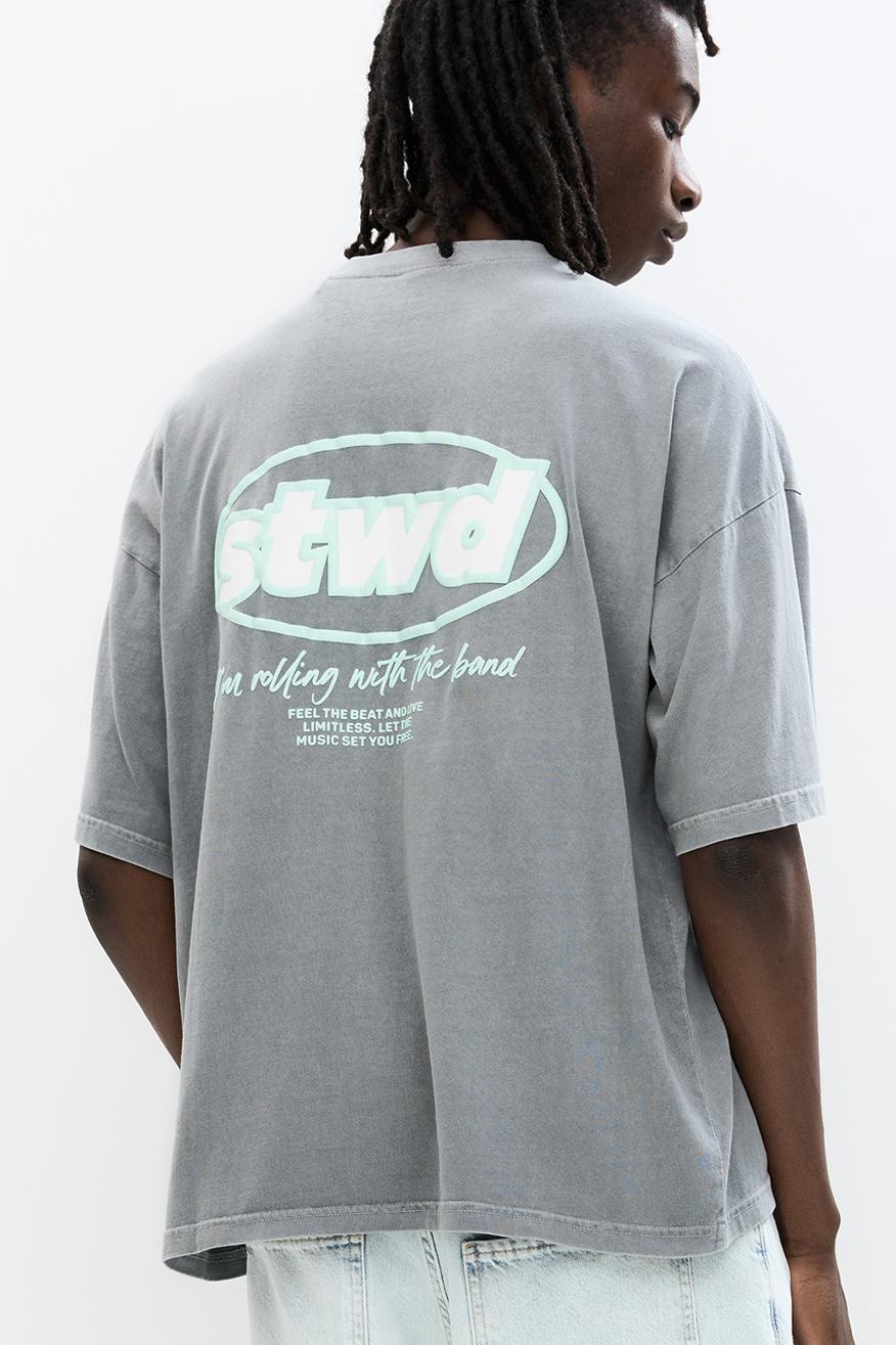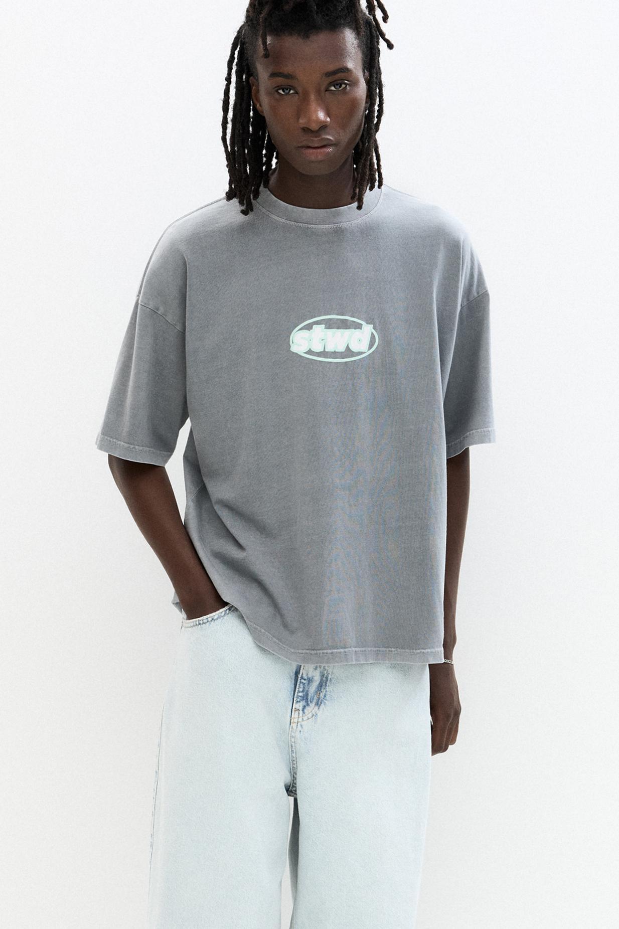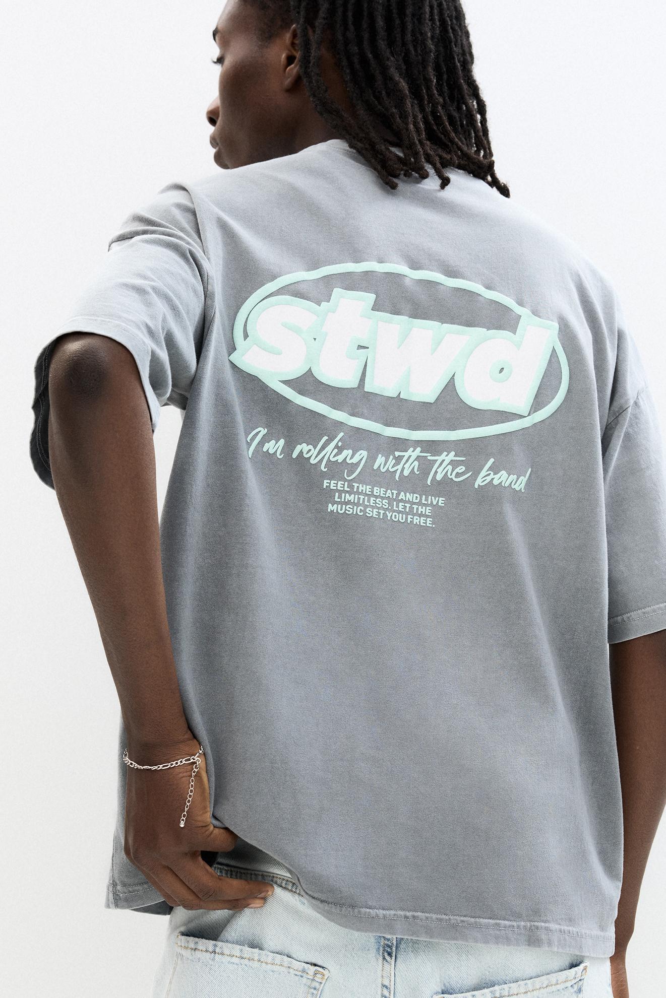 Short sleeve T-shirt with a crew neck and an STWD graphic on the front and back. Made of washed cotton.