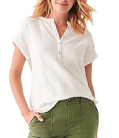 Faherty Dream Organic Cotton Gauze Short Sleeve Desmond Top