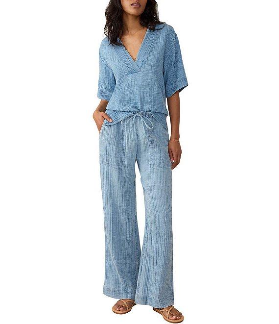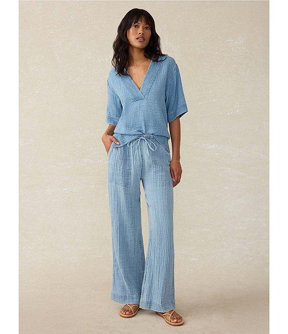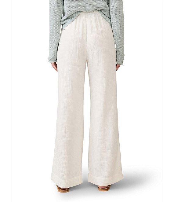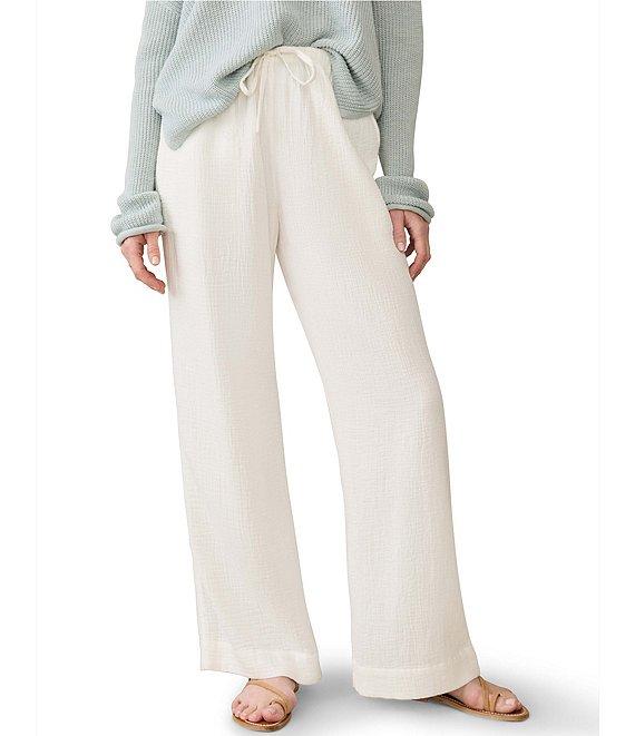 Faherty Dune Organic Cotton Gauze Drawstring Woven Mid Rise Palazzo Pants