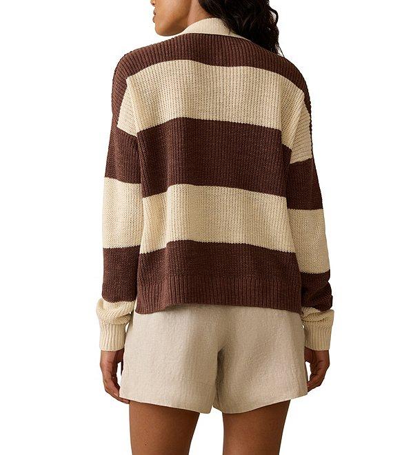 Faherty Miramar Knit Striped V-Neck Long Sleeve Rugby Polo