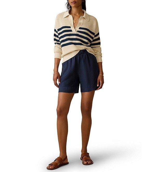 From Faherty, this polo features: Knit fabrication V-neckline with collar Long sleeves Horizontal stripe print Relaxed fit Straight hemline Pullover construction Approx. 21.5" in length Hand wash Imported.