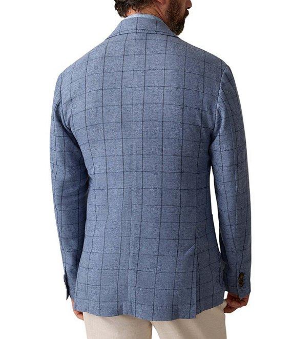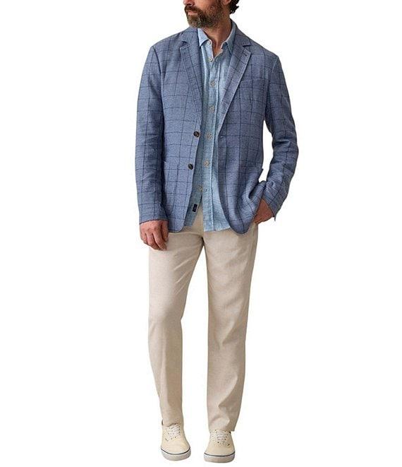 From Faherty, this blazer features: Windowpane pattern Notch lapel Long sleeves that are fully lined 2-button closure Double-vented back Left chest welt pocket 2 lower patch pockets 2 interior pockets Partial lining Stretch fabric Linen/organic cotton/Sorona® polyester Dry clean Imported.