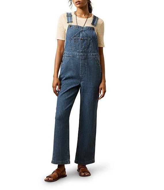 From Faherty, this overall features: Woven construction Overall silhouette Square neck Sleeveless Pockets Straight hemline Button closure Approx. 30" inseam Organic cotton/elastane Close all fastenings and turn inside out before machine washing on a cold and gentle cycle with like colors. Do not bleach. Tumble dry low, remove promptly. Cool iron when needed. Imported.