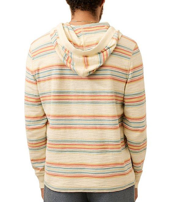 From Faherty, this hoodie features: Ombre pattern Attached hood with drawstrings Crew neck collar Long sleeves 3-button placket Regular fit Pullover construction Cotton Machine wash cold/tumble dry Imported.