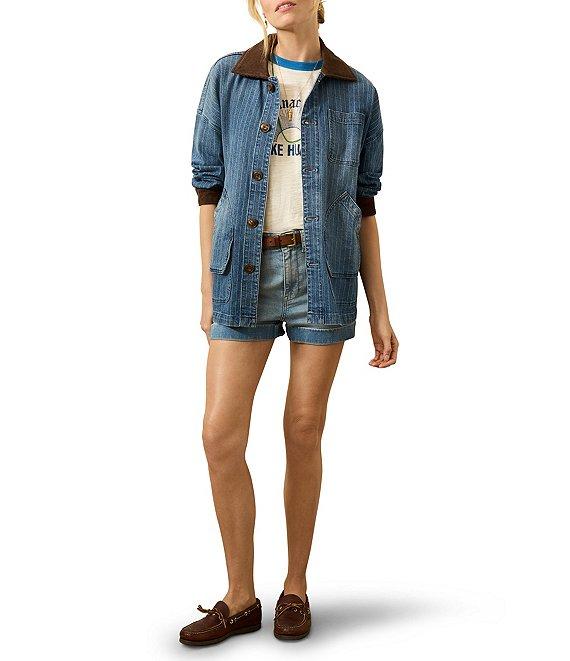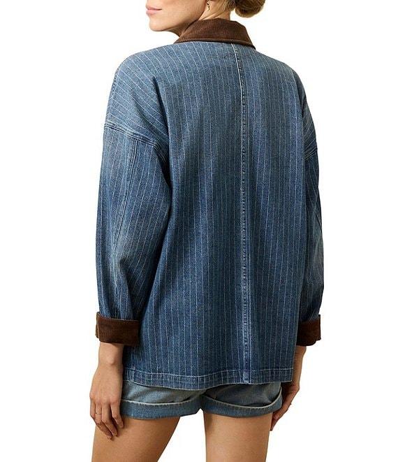 From Faherty, this jacket features: Mixed media fabrication Point collar Long sleeve Patch pockets Button front closure Approx. 29.5" length Organic cotton/elastane Close all fastening and turn inside out before machine washing on a cold and gentle cycle with like colors. Do not bleach and use a cool iron, if necessary. Lay flat to dry. Imported.
