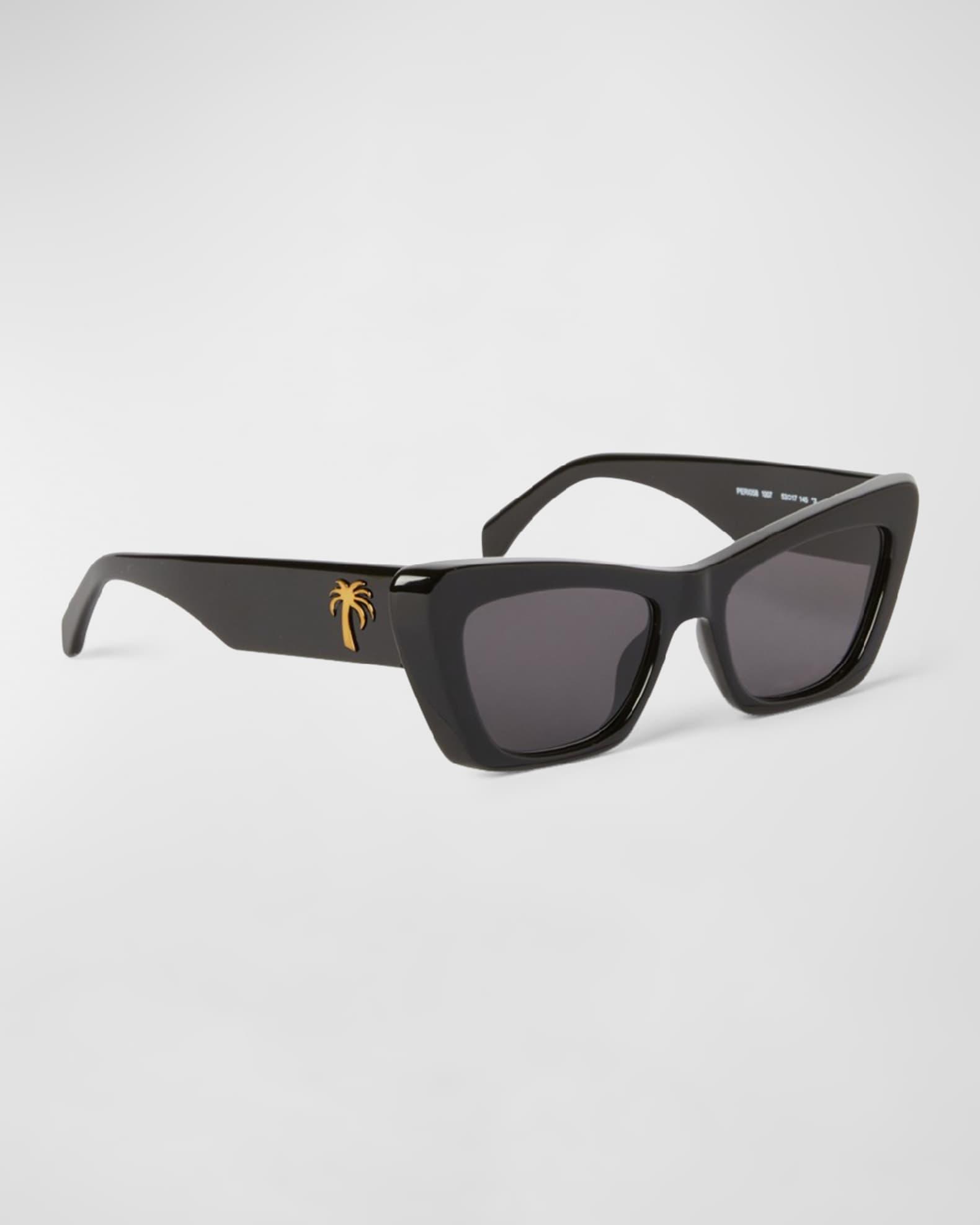 Palm Angels "Fairfield" cat-eye sunglasses in acetate Lens/bridge/temple (in mm): 53-17-145 Solid-color lenses Logo on temples Wide, tapered arms 100% UVA/UVB protection Made in Italy Proposition 65 warning for California residents