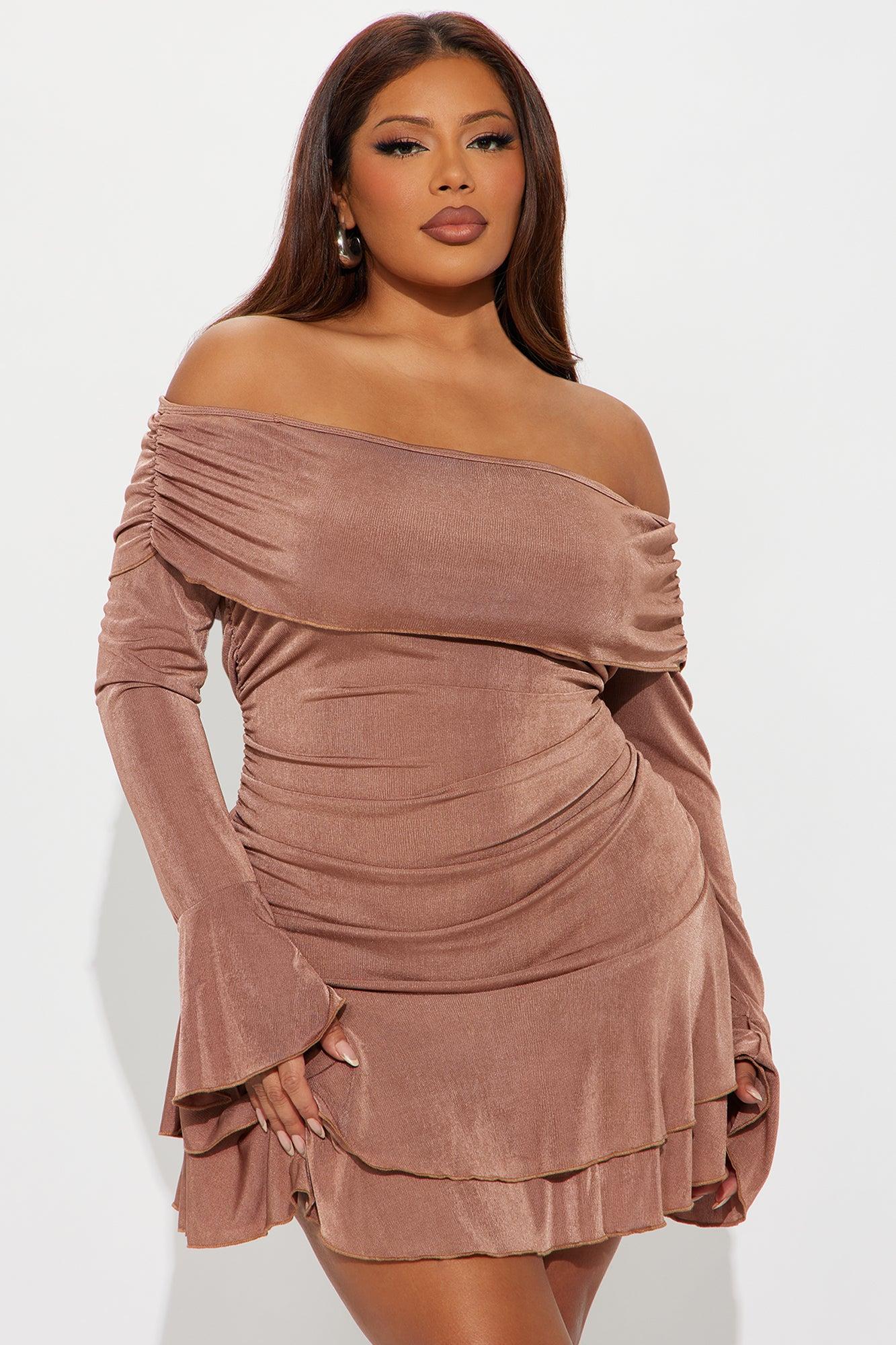 Faith Off Shoulder Ruffle Mini Dress - Cognac Female
