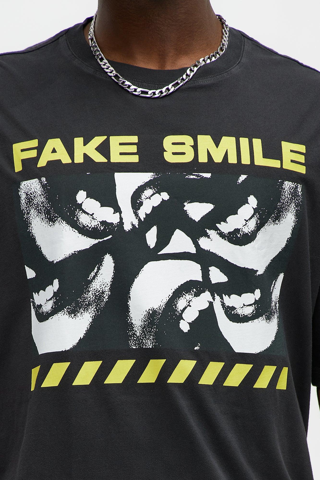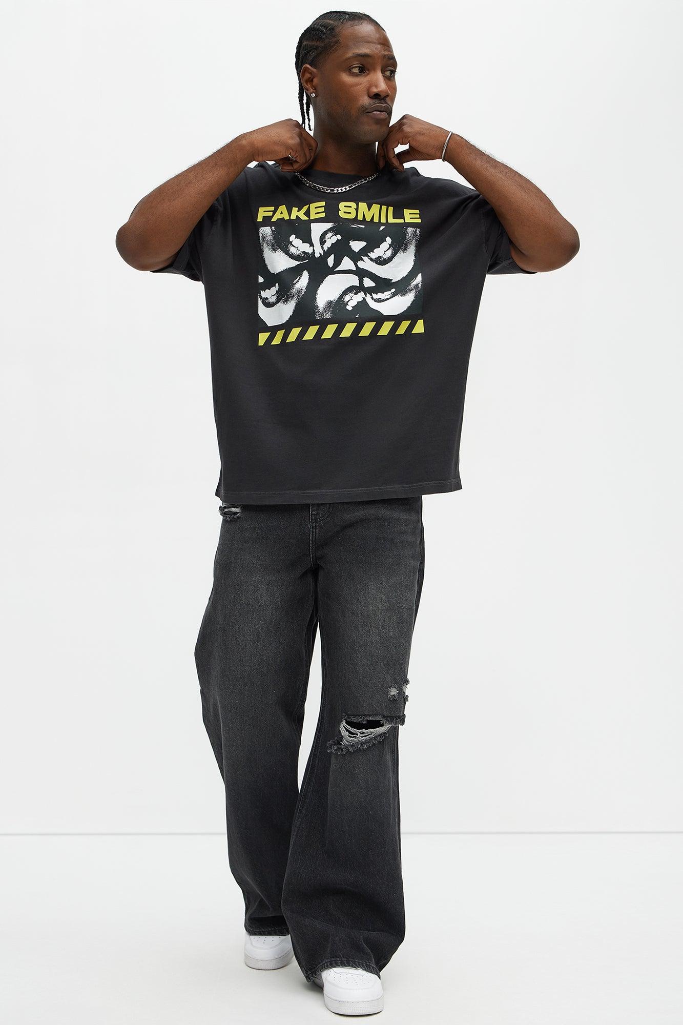Fake Smile Oversized Short Sleeve Tee - Black