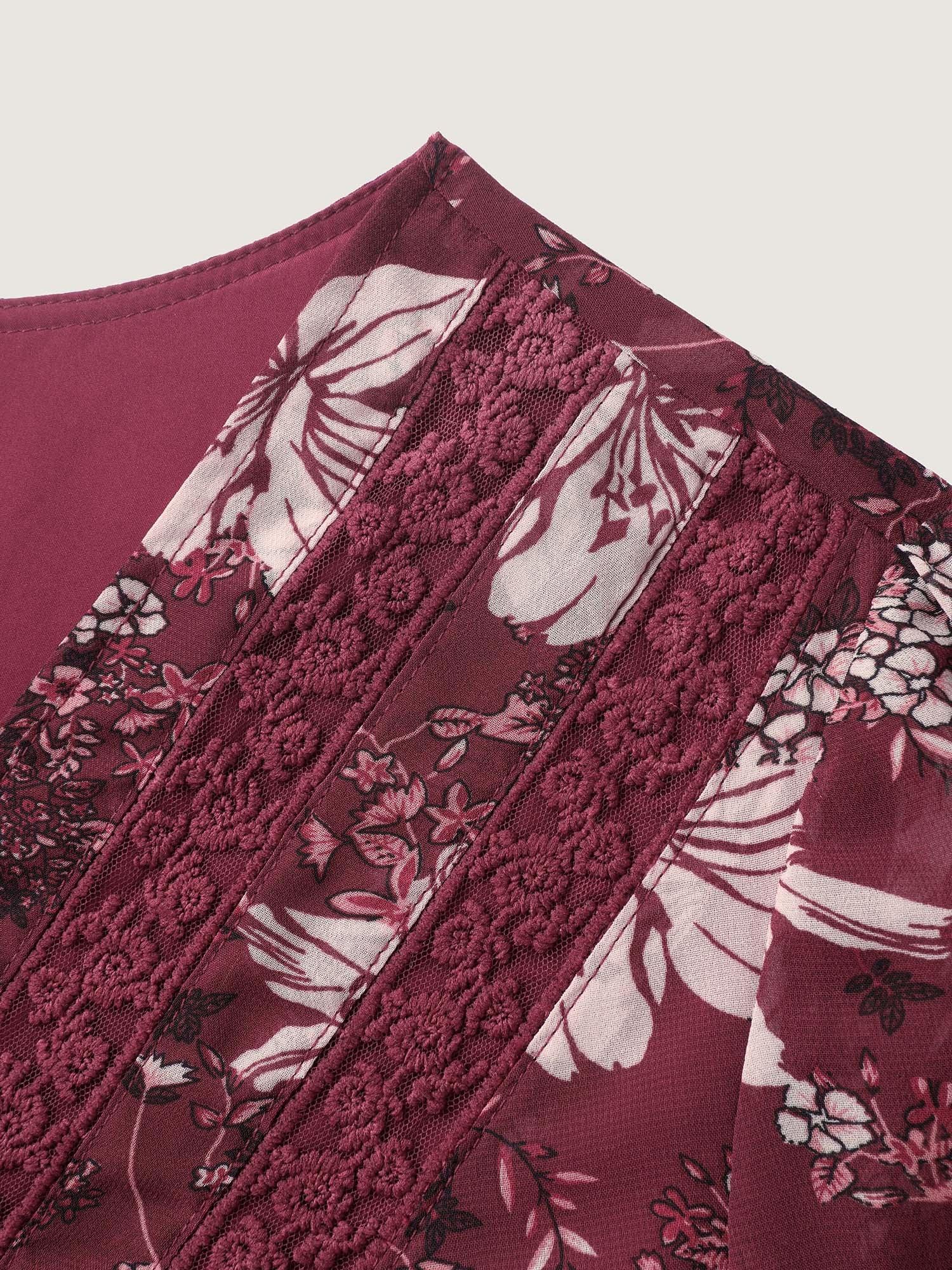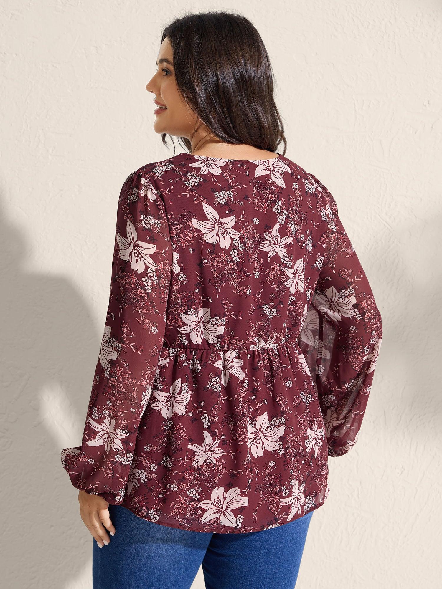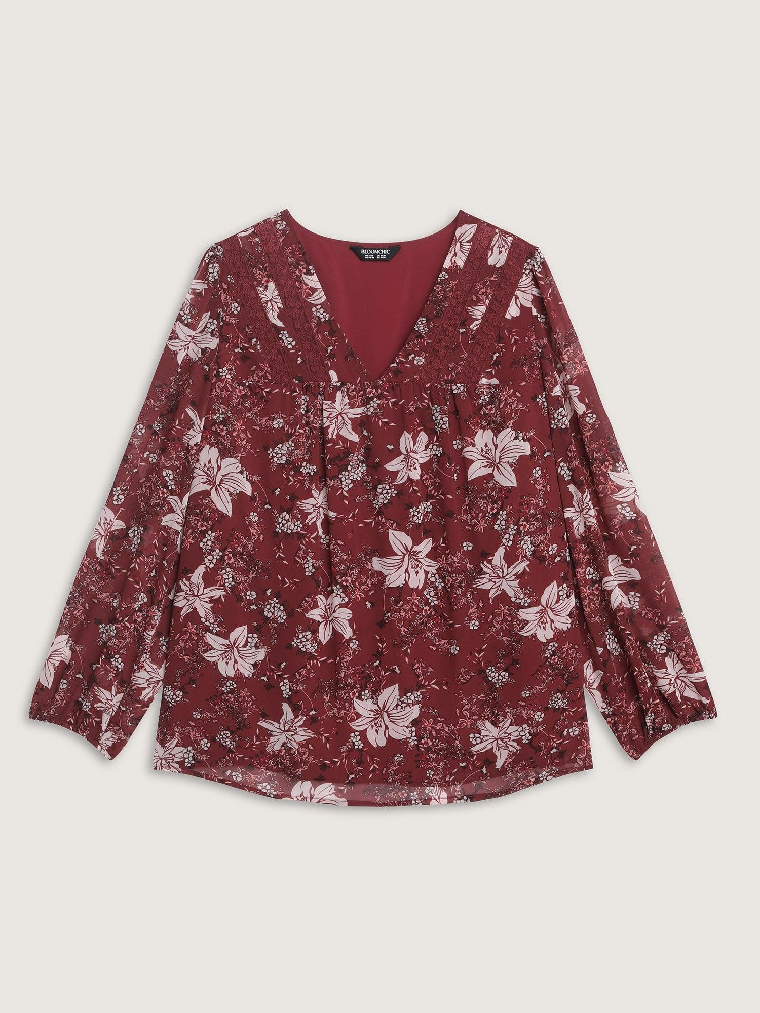 Fall Floral Print Lace Trim Blouse Female