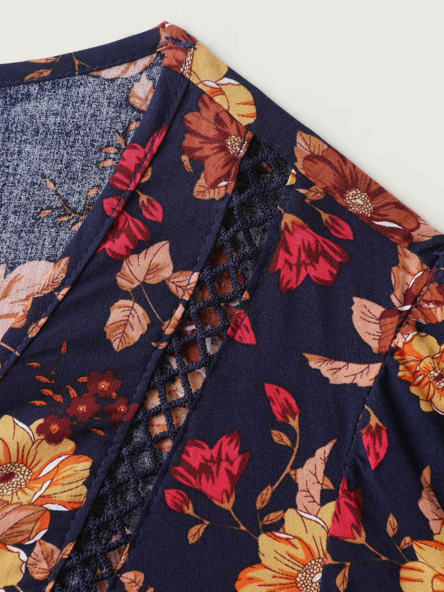 Fall Florals Lace Trim Flowy Blouse Female