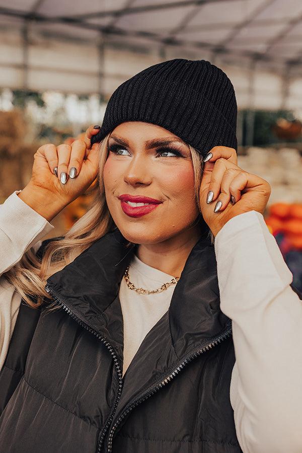 Fall Gratitude Fleece Lined Beanie In Black
