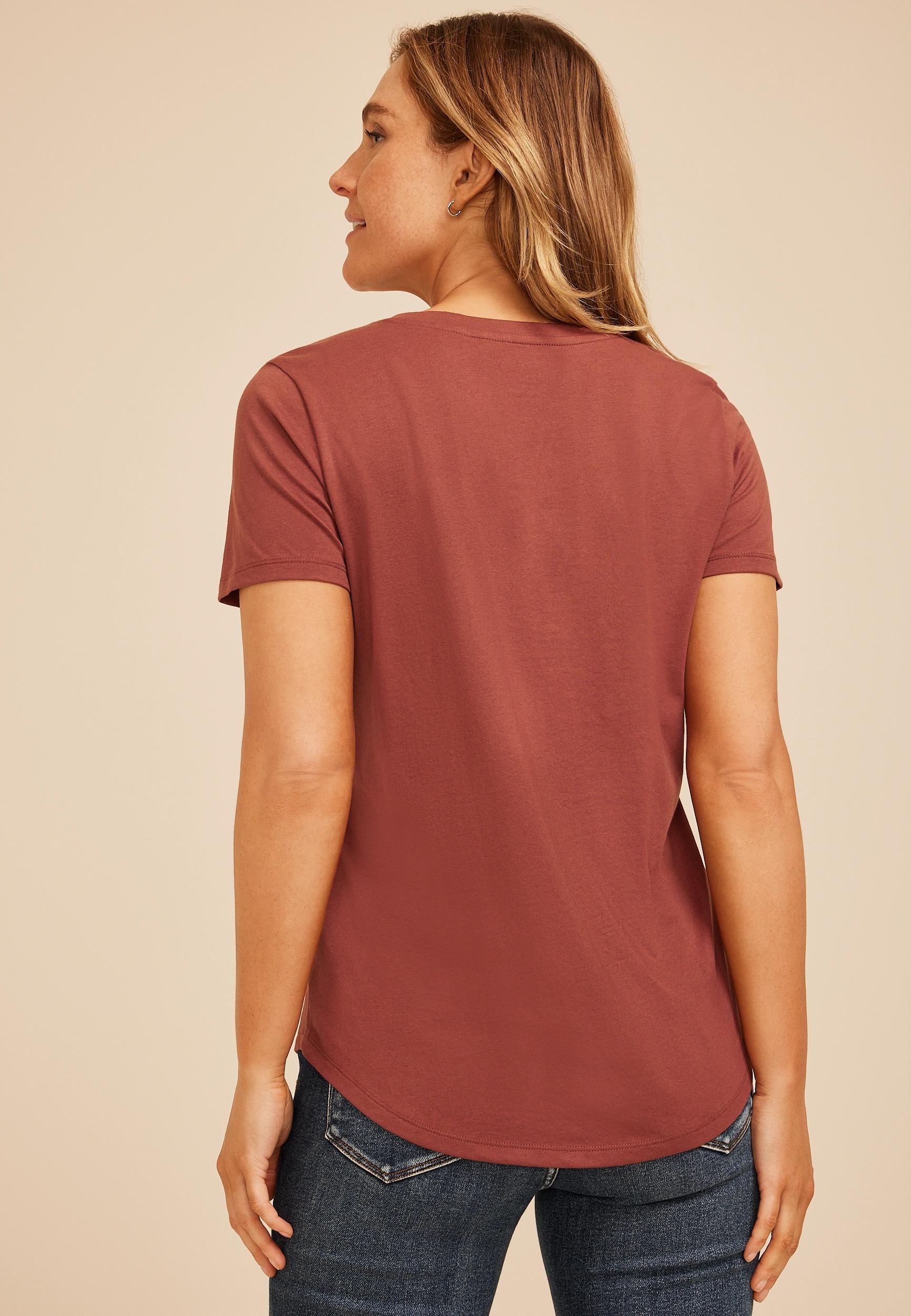 Soft and flawless with a hint of shape for an easy feminine feel. .mar-pdp-section .mar-product-description {color: #000;}.mar-pdp-section .mar-product-description ul, .mar-pdp-section .mar-product-description ul>li {margin-left: 10px;padding-left: 10px;}.mar-pdp-section .mar-product-description .mar-product-description-content ul li{list-style-type: disc;margin: 0 0 5px;padding-left: 5px;}.mar-pdp-section .mar-product-description p {color: #000;padding: 5px 0;}@media only screen and (max-width: 1023px){.mar-pdp-section .mar-product-description .mar-product-description-content ul li{list-style-type: disc !important;} .mar-pdp-section .mar-product-description .mar-product-description-content .mar-tab-content ul{padding-left: 10px;}.mar-pdp-section .mar-product-description .mar-product-description-content .mar-tab-content {font-weight: 300;}} Features: comfortable fabric easy stretch solid versatile color licensed Peanuts inchSnoopy and Woodstock inch fall leaves graphic notch neck short sleeves standard length straight hem