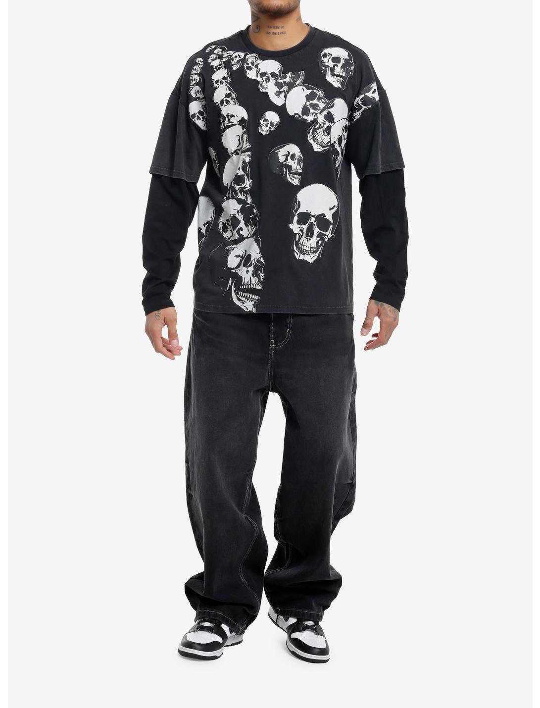 Falling Skulls Oversized Twofer Long-Sleeve T-Shirt