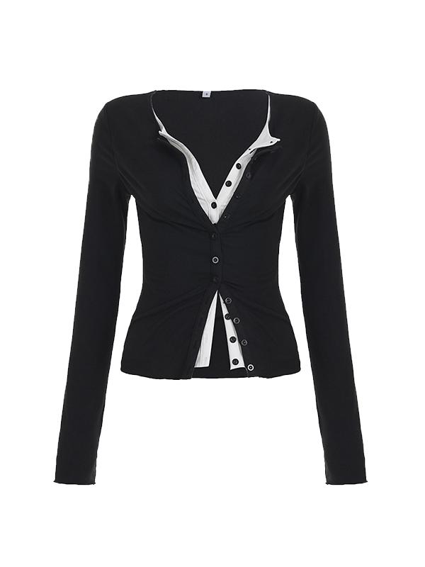 False Two-Piece Stretch Long Sleeve