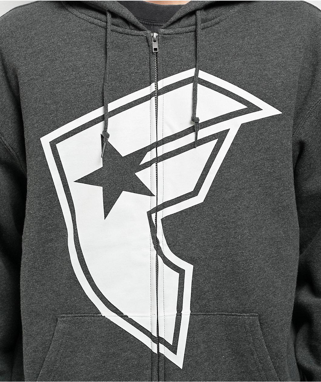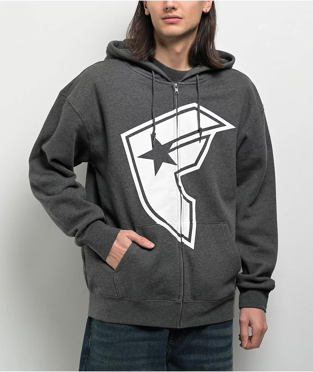 Famous Stars & Straps, Y2K fashion brand from iconic drummer Travis Barker, presents the grey BOH zip hoodie. A large white F logo adds bold contrast to the chest, with an additional logo on the left hood giving the zip top a unique look. Dual hand p