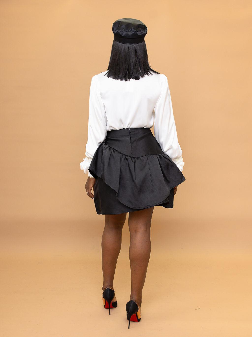Our Fancie Skirt features luxurious Mikado silk fabric in an elegant black shade. The skirt has two layers, creating an extra bit of texture and sophistication. Perfect for formal or stylish occasions.