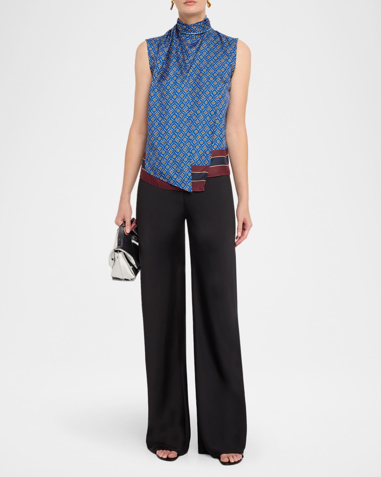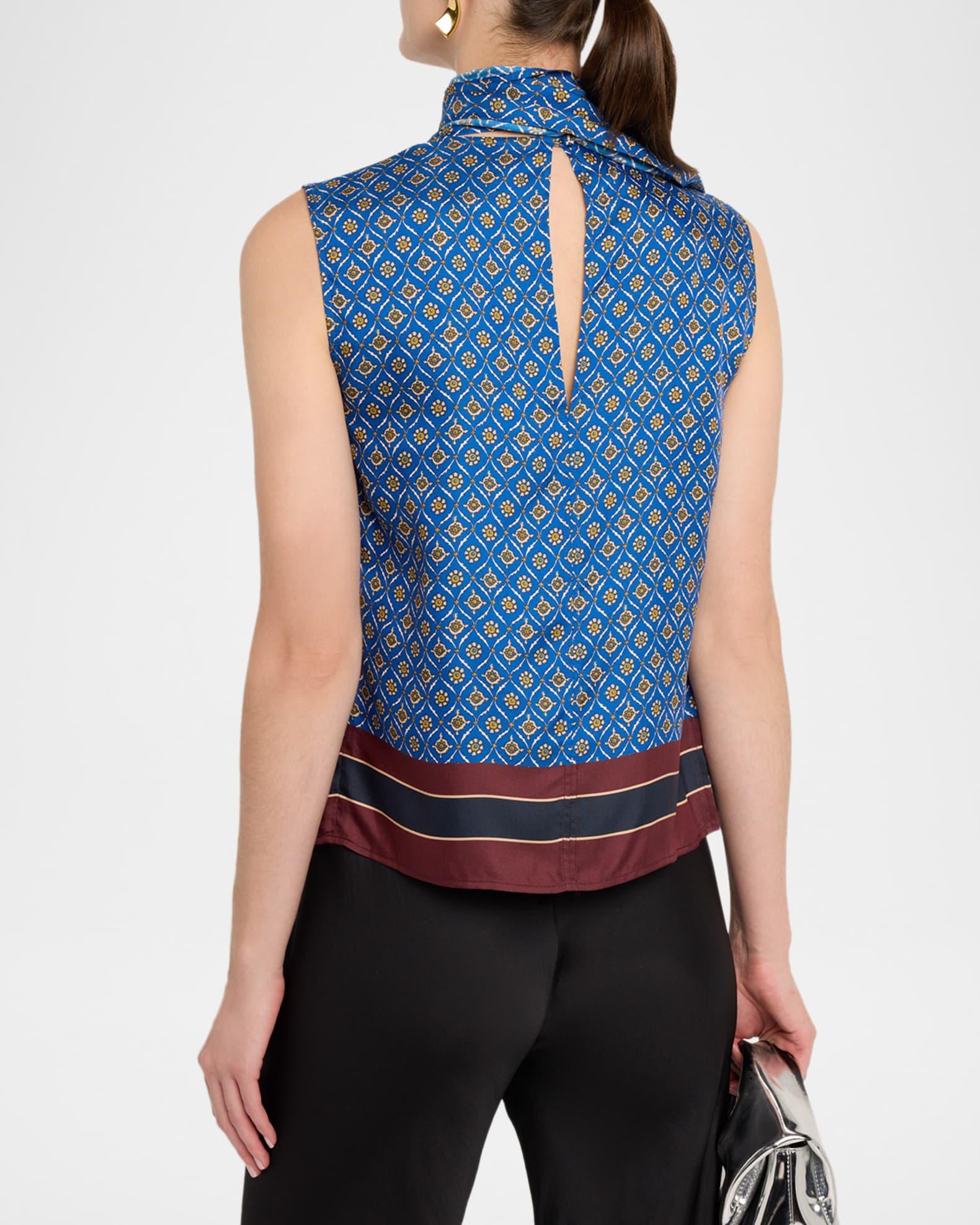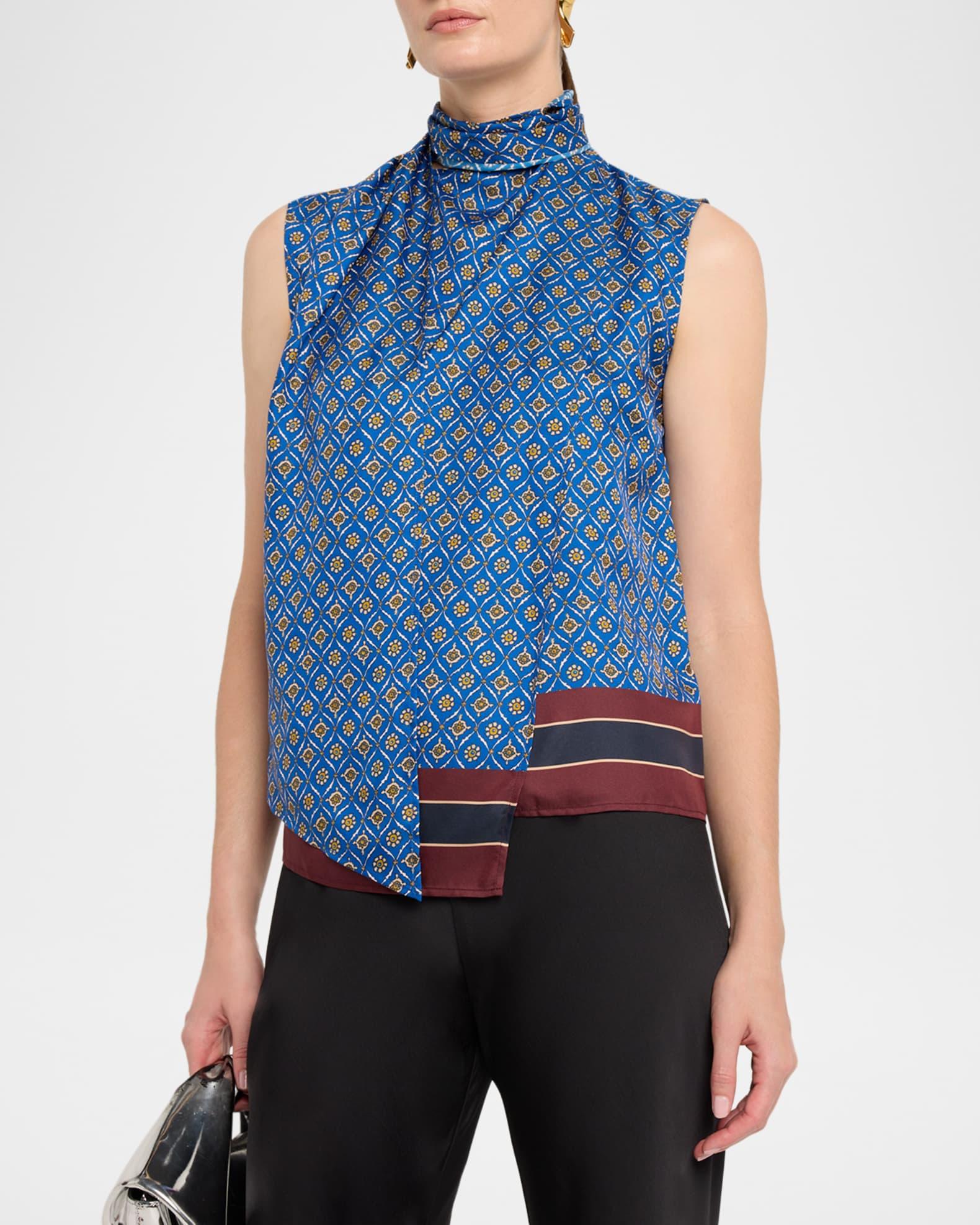 Fancy Draped Floral-Print Blouse