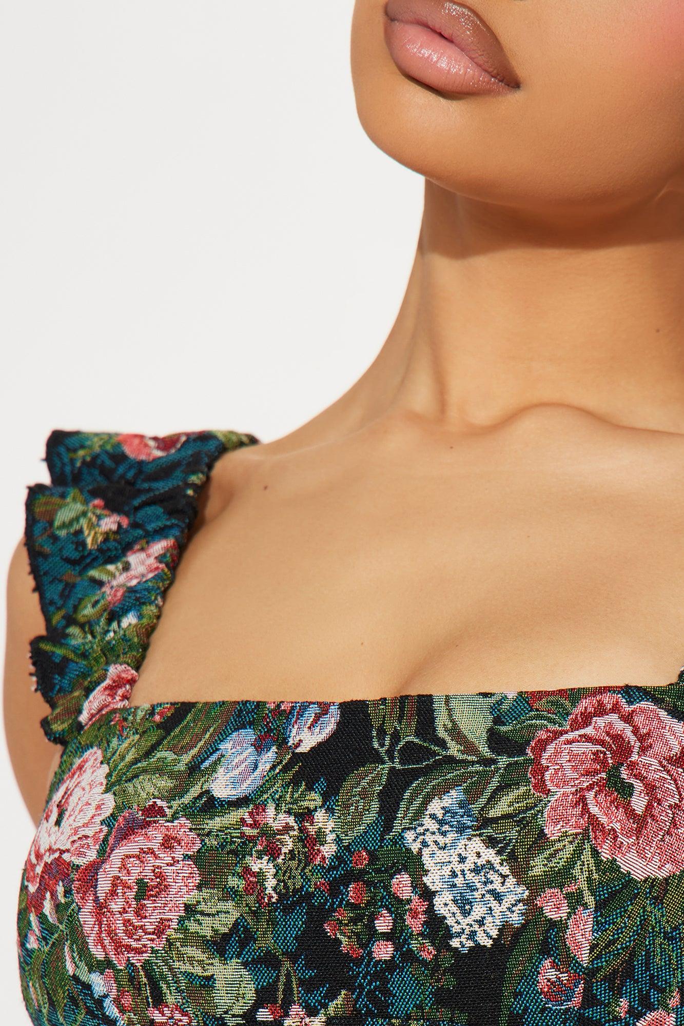 Fancy Feel Floral Jacquard Corset Top - Black/combo