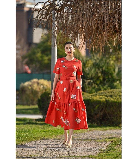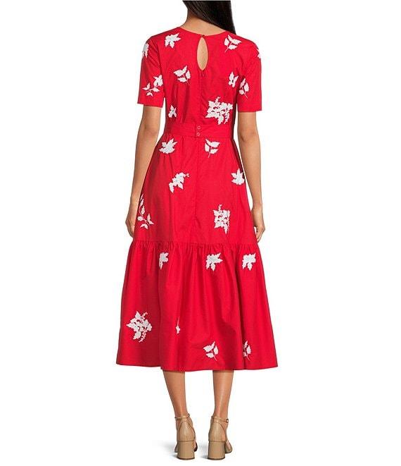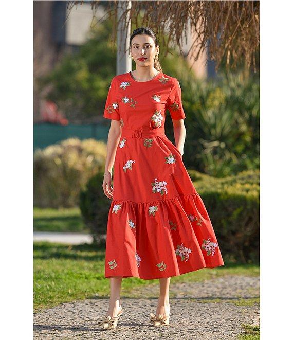 Fanm Mon Nursel Embroidered Crew Neck Short Sleeve A-Line Midi Dress