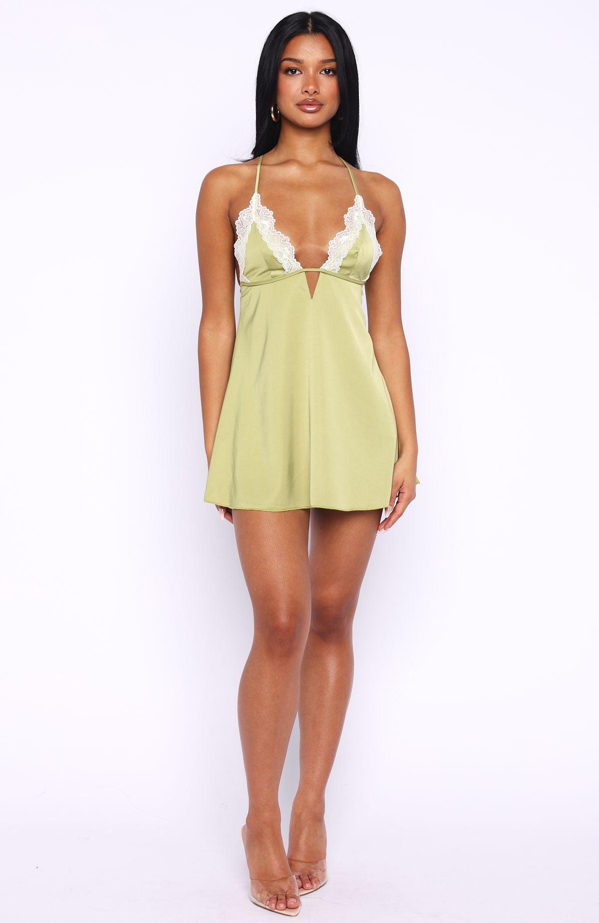 She’s a mini must, meet our Far Off Places Mini Dress Matcha! Featuring a low plunge neckline with lace detailing at bust, thin adjustable shoulder straps, satin like light-weight material, front key hole cut out design and mini length. Pair wth kitten heels and a shoulder bag for a look we love!