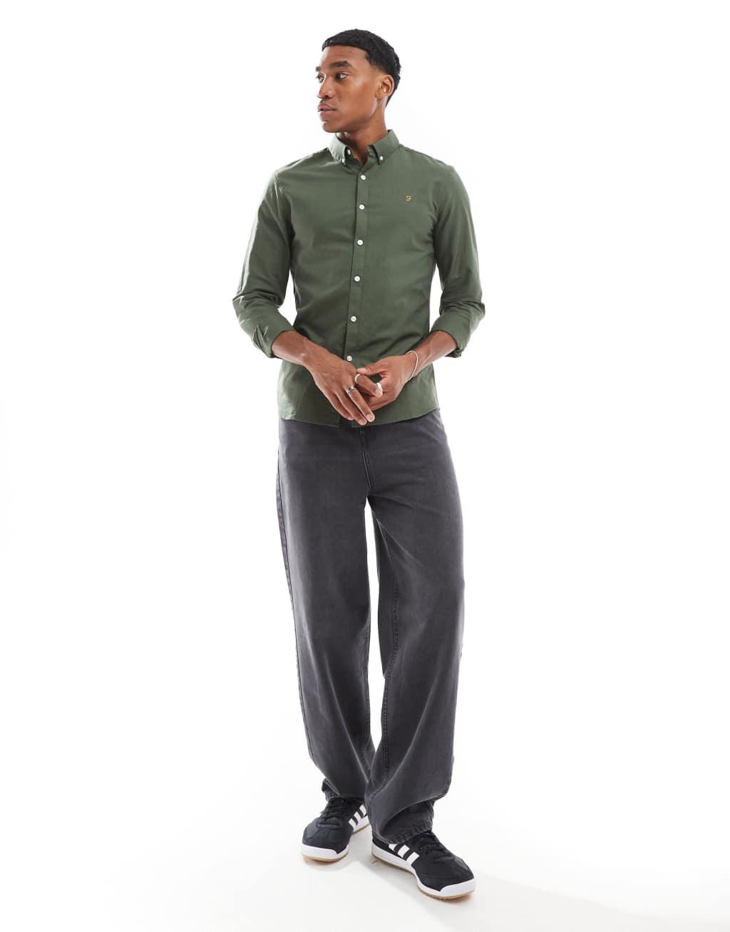 Farah Brewer slim fit long sleeve oxford shirt in forest green