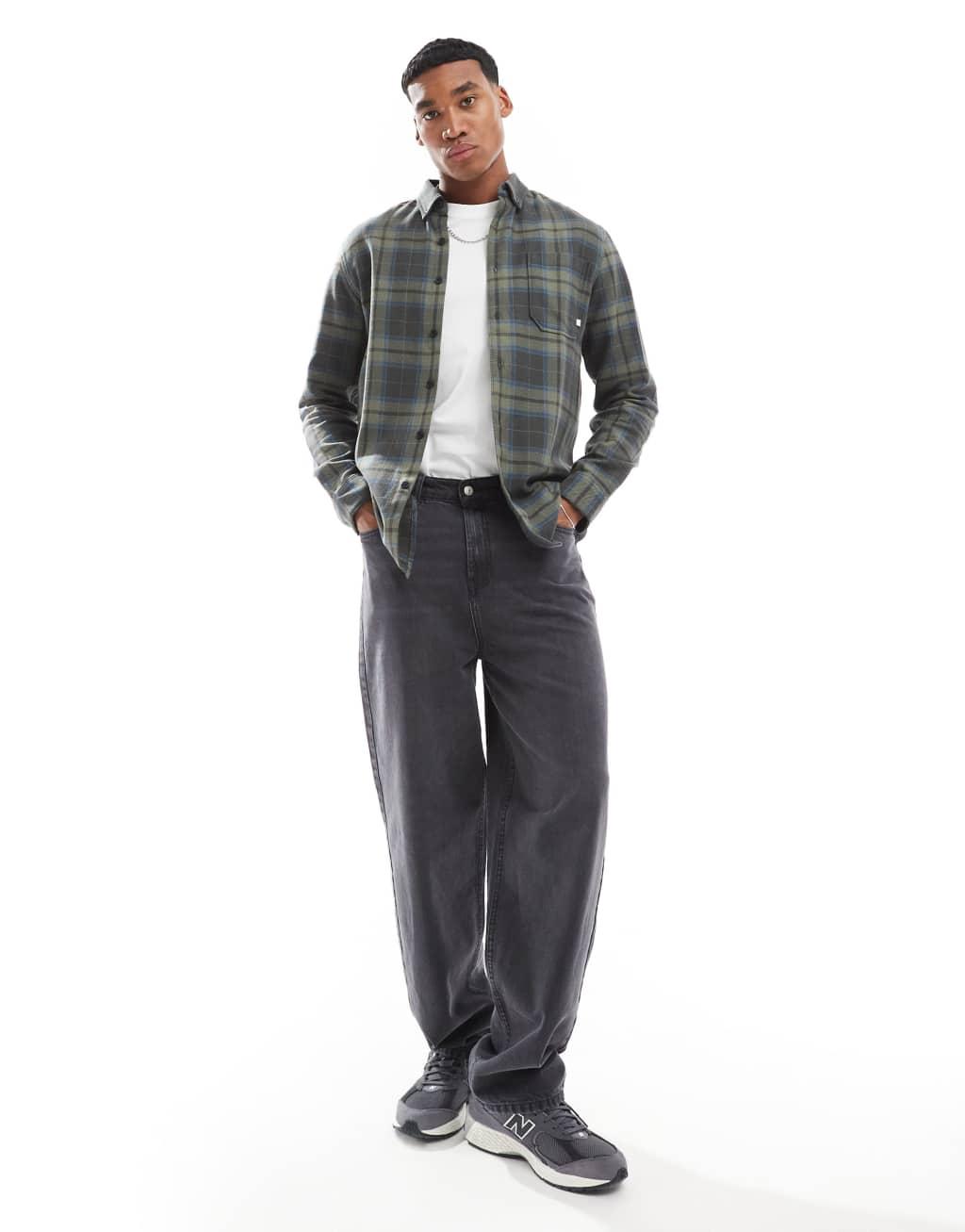 Farah marcelo check long sleeve shirt in black and green