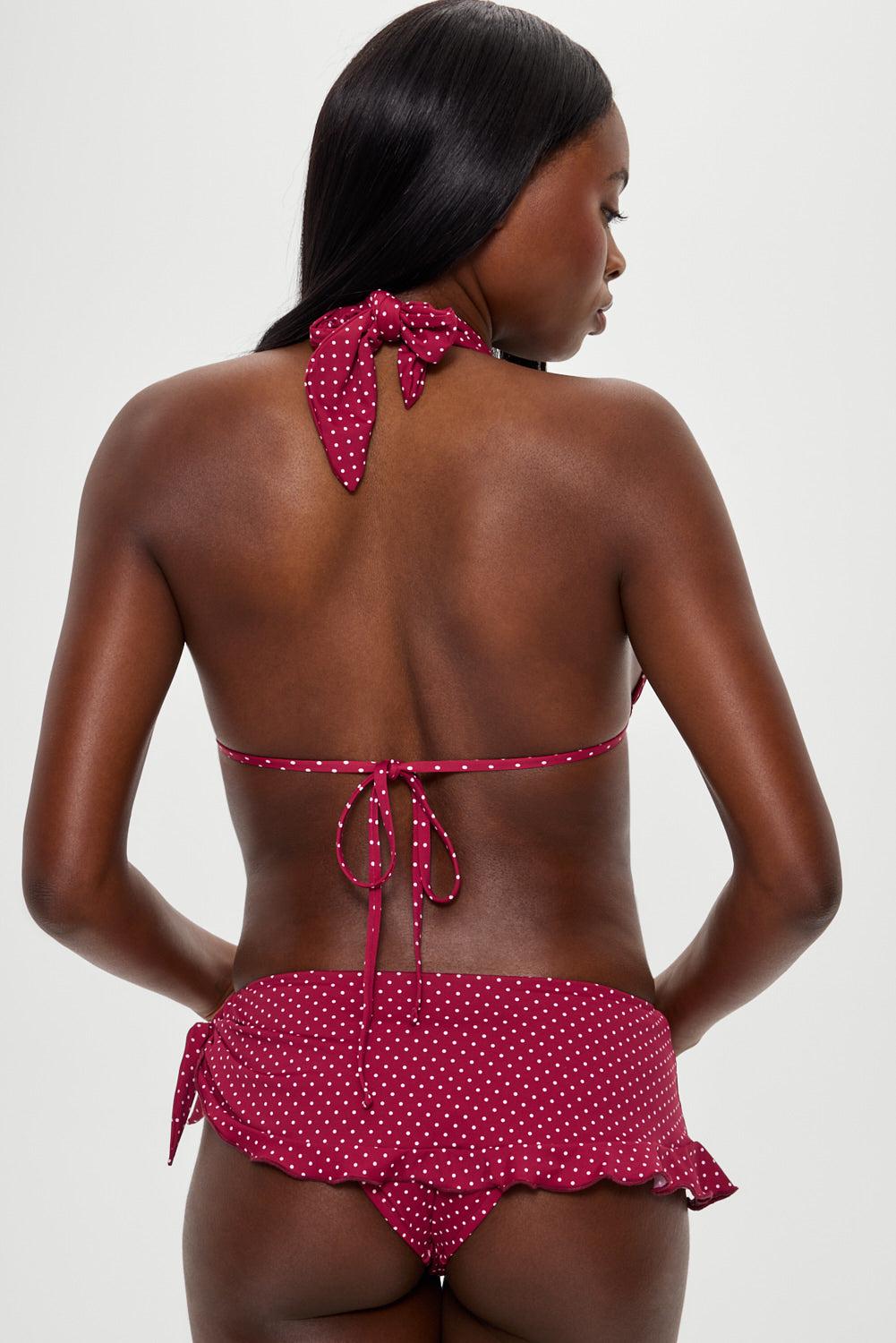 The Farah swim skirt is designed to look like a tiny sarong. This low rise swim skirt ties at the side with a functional wrap detail that creates an asymmetrical drape over the hip. Perfect for pool days, spring break trips, and beach club lounging. Details Low rise fit Asymmetrical wrap with functional side tie New polka dot pattern Built-in bikini bottom Our signature swim fabric