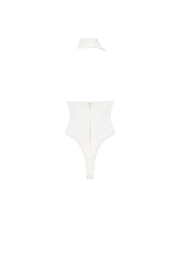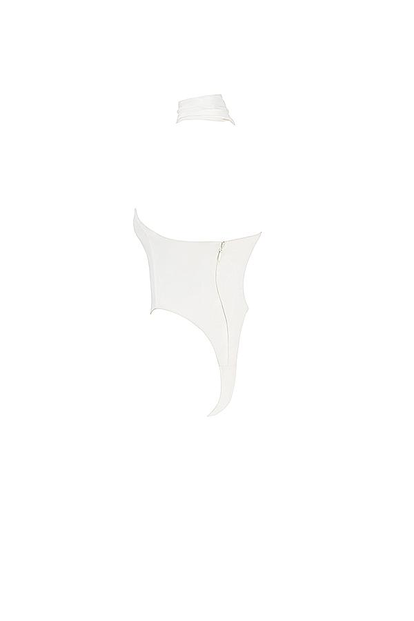 'Farrah' is our striking sleeveless bodysuit that we love paired with tailored trousers. This ultra feminine creation is cut from our lustrous, ultra light duchess satin in soft ivory and has a one shoulder cut, fitted with internal side boding for a structured fit.