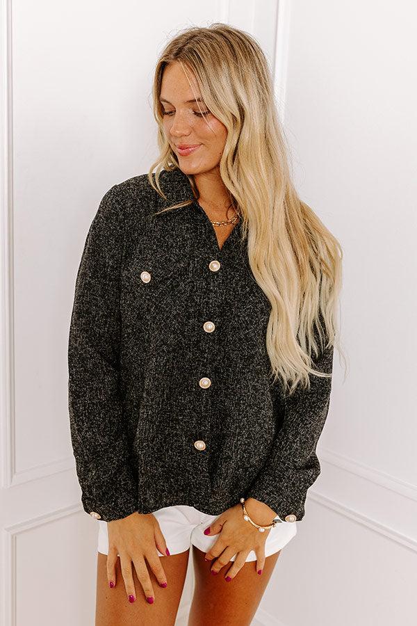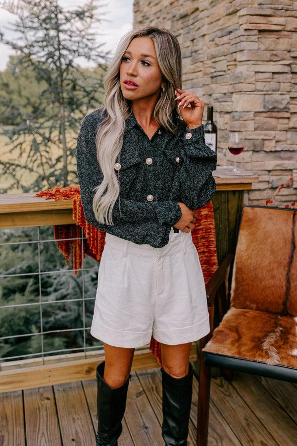 - This beautiful piece will give your OOTD a sophisticated feminine touch! - Unlined material - A collared neckline - A button-up front featuring faux pearl buttons - Functional chest pockets - Long, loose sleeves with button closure cuffs - A relaxed silhouette that ends in a rounded hemline with accent side slits