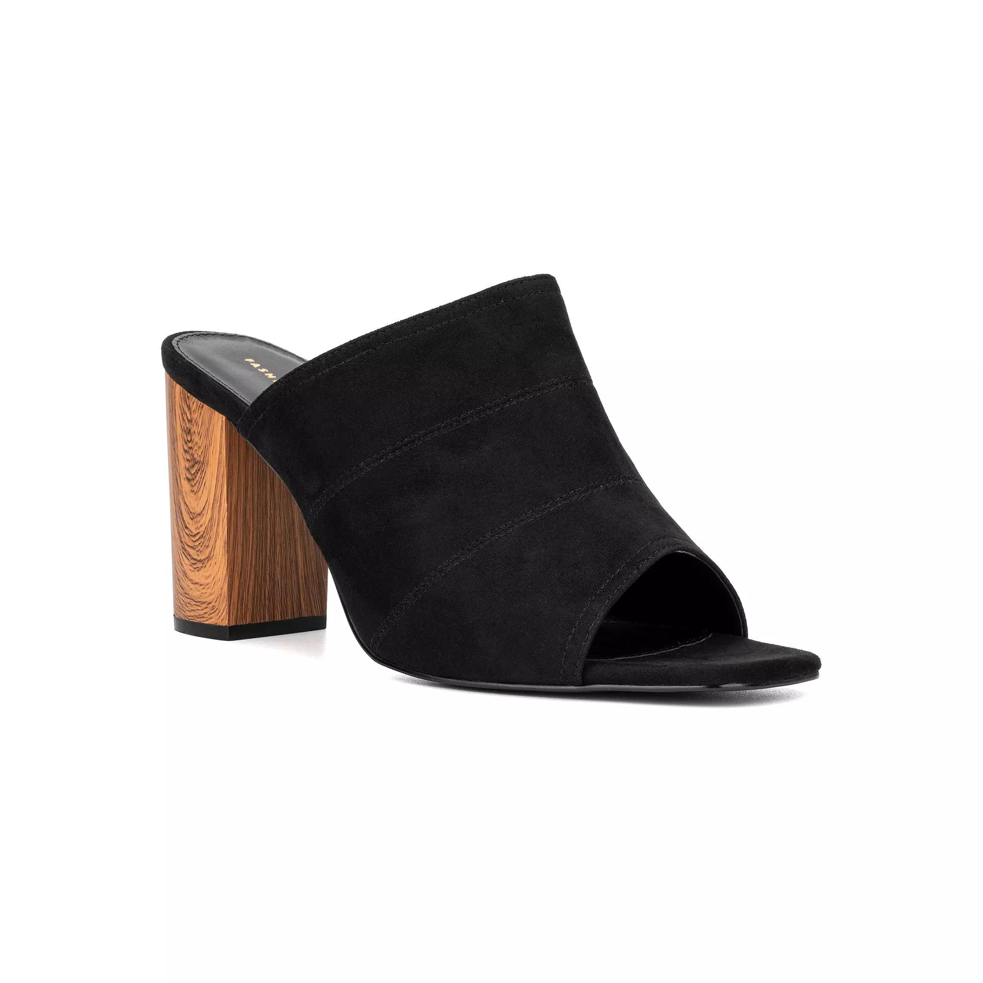 A soft faux-suede mule fashioned with an open toe and imitation woodgrain block heel offers chic retro vibes. 3 1/4 heel Open toe Faux suede upper Block heel Synthetic upper/textile lining/synthetic sole Imported
