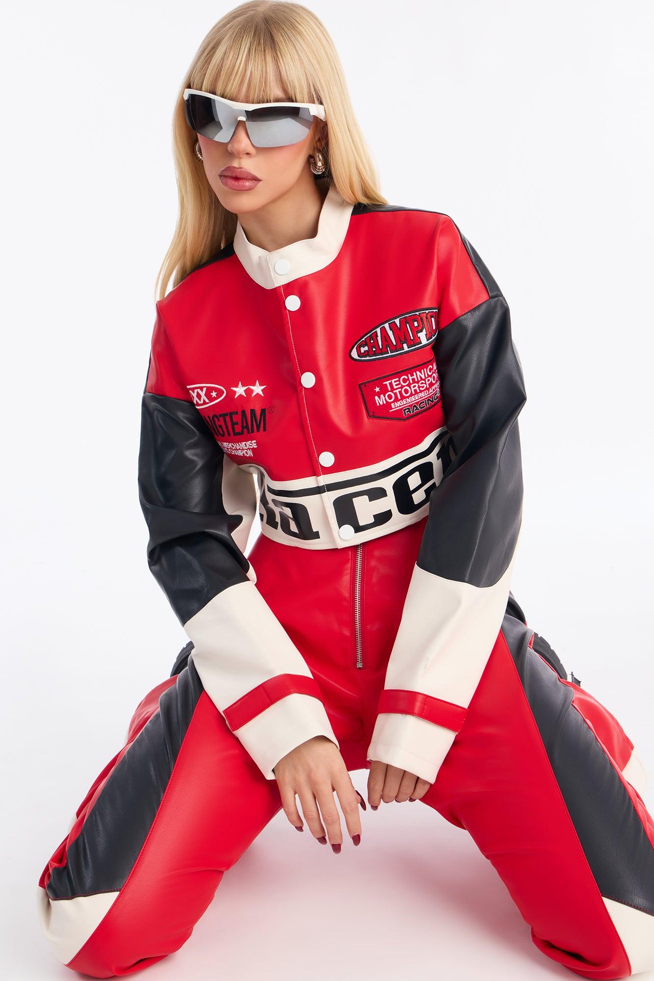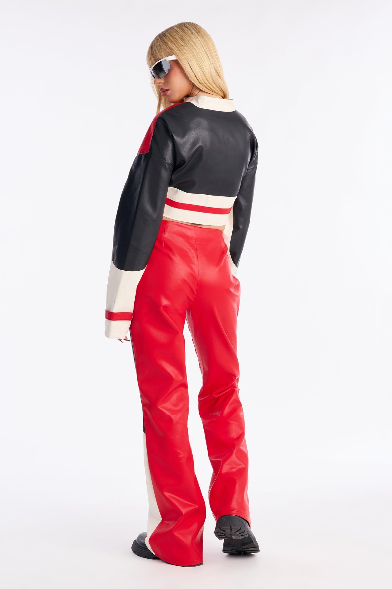 Fast Track Babe Faux Leather Pant Set - Red/combo Female