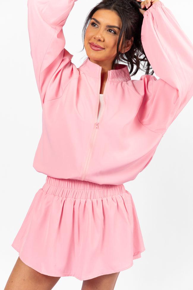 Details Light Pink Active Skort Fabric has some stretch Elastic waistband, functional pockets Lined with biker shorts with pockets Size small inseam: 2" Material and Care 96% polyester 4% spandex, lining: 75% nylon 25% spandex Gentle machine wash, line dry Patterns may vary Materials may have natural variations Colors may vary from different viewing devices.