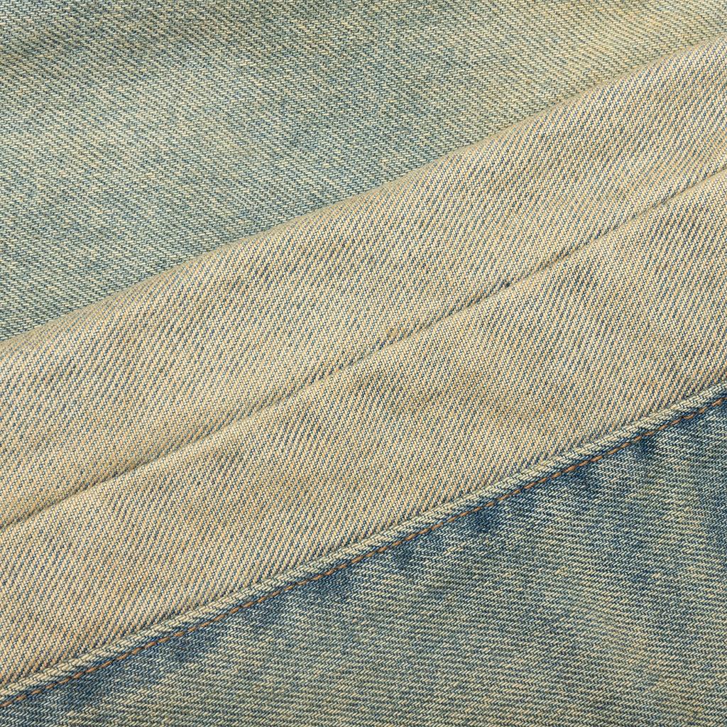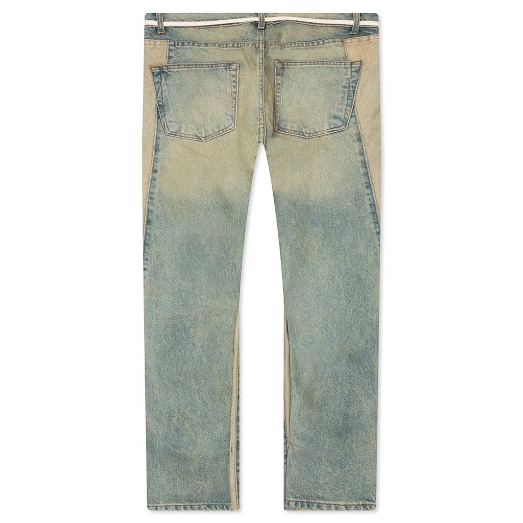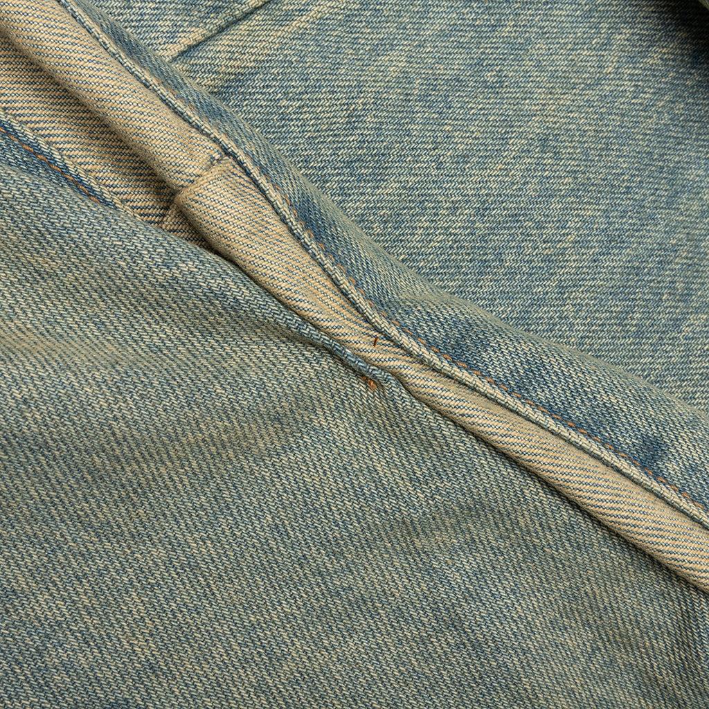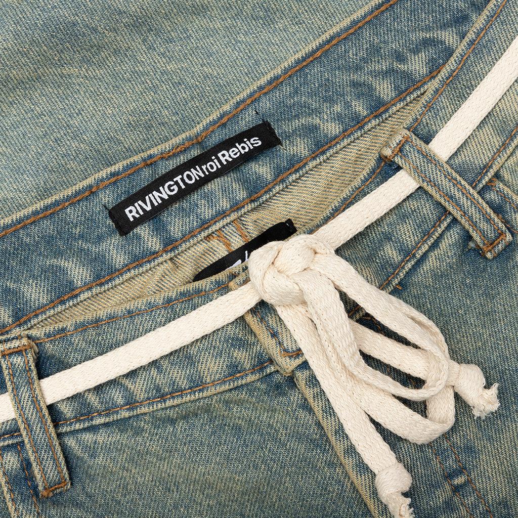 The Fathers Garden Repentant Pant from RIVINGTON roi Rebis is made from US denim, offering a sturdy and authentic feel. It features hand distressing and hand staining throughout, giving each pair a unique, worn-in look. The classic 5-pocket design adds practicality, while the paneling on both legs enhances the rugged, vintage-inspired style of these jeans. 100% Cotton US denim Vintage wash Hand distressing Hand staining 5 Pocket design Paneling detail Shoestring belt Style No: FGRP-PA55-LIND