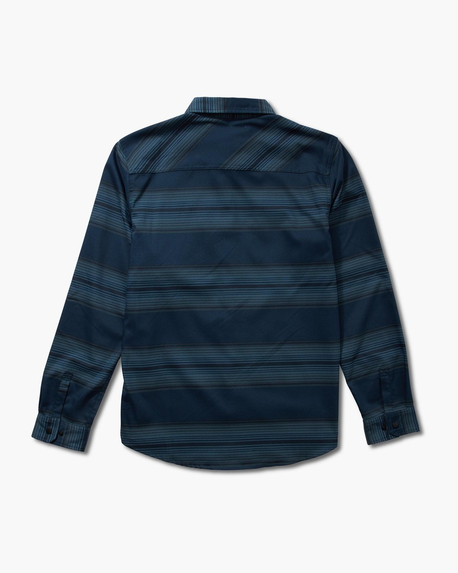 97% Polyester / 3% Elastane Midweight poly twill with DWR coating 2-way stretch fabrication Yarn dyed plaid Zippered welt pocket at left chest Snap buttons at front placket and chest pockets