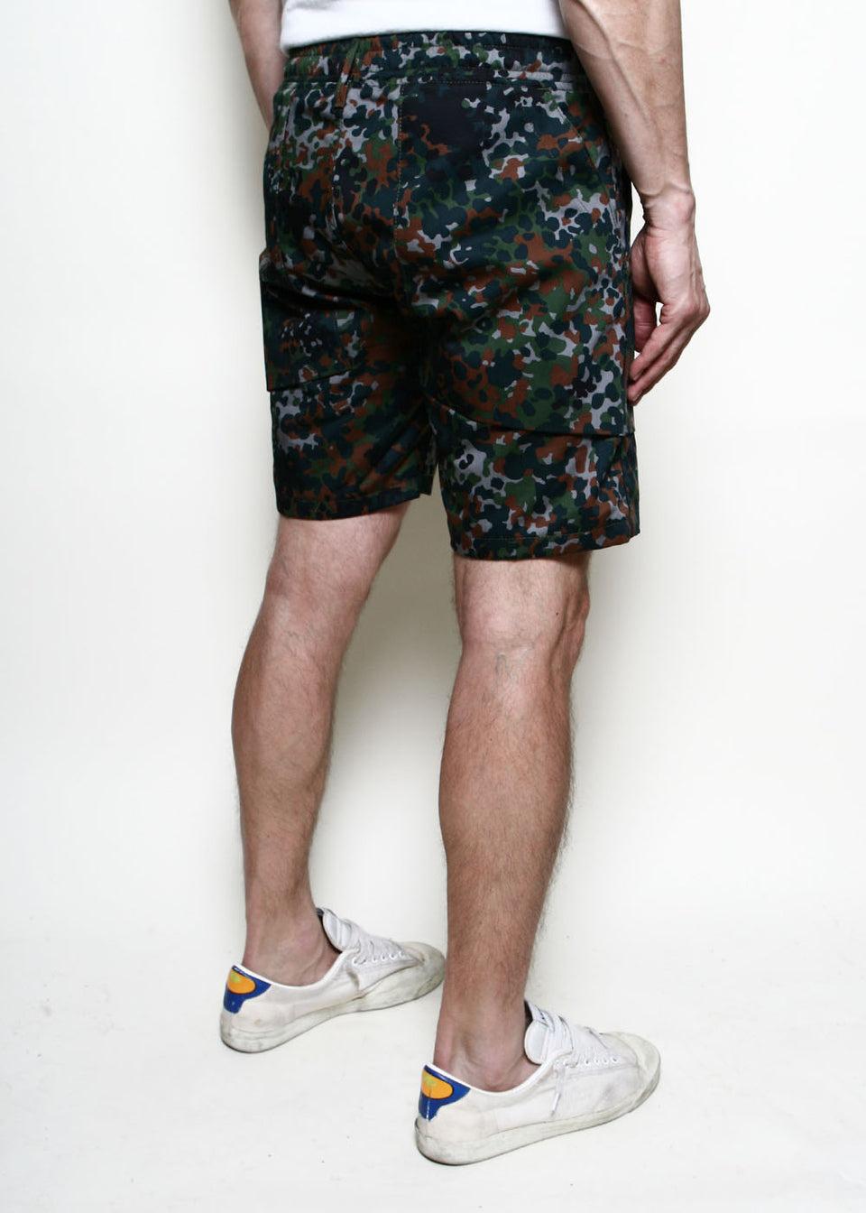 FIT // Slim FABRIC // 9oz 100% cotton printed Japanese twill – Elastic in waistband– Front and back pockets w/ signature gusset design– Side key-loop– Double-needle feld seam construction on inseam & side seam– Urea buttons made in Japan– Sewn in Los Angeles, Calif. HOW WE MEASURE OUR PANTS // SIZING GUIDE Measurem