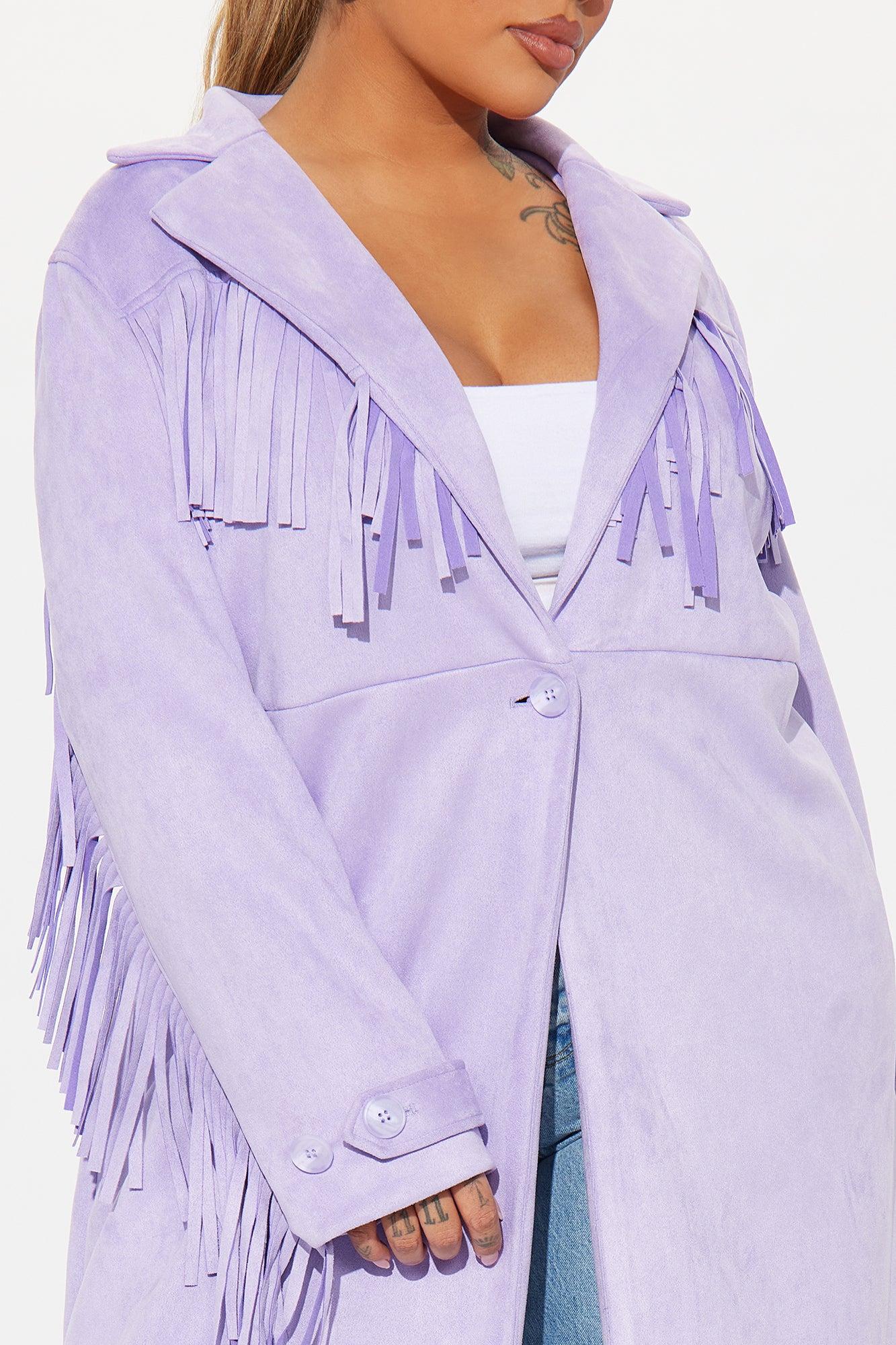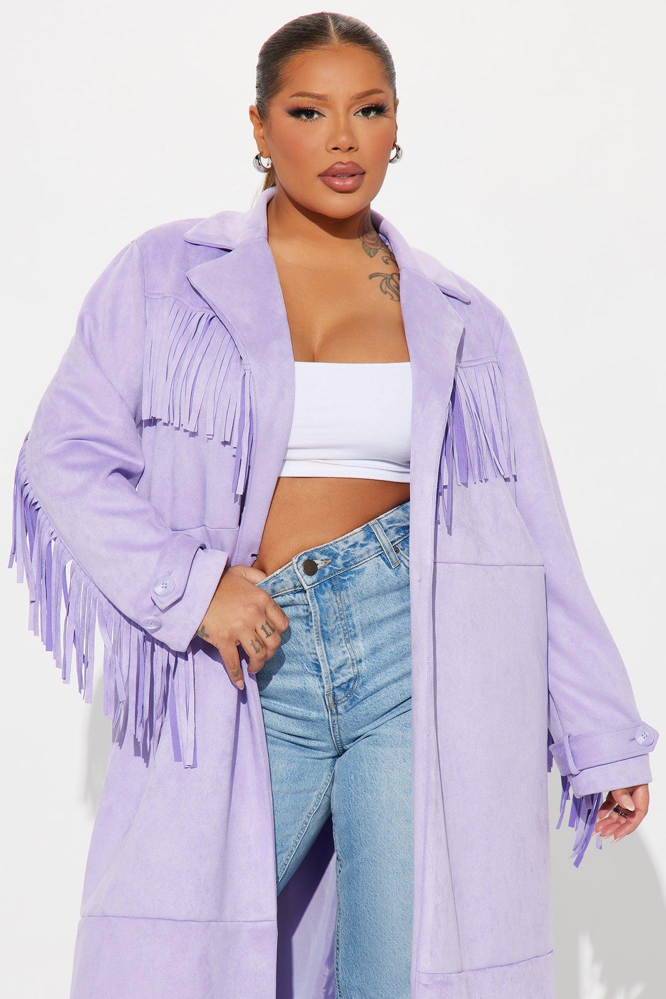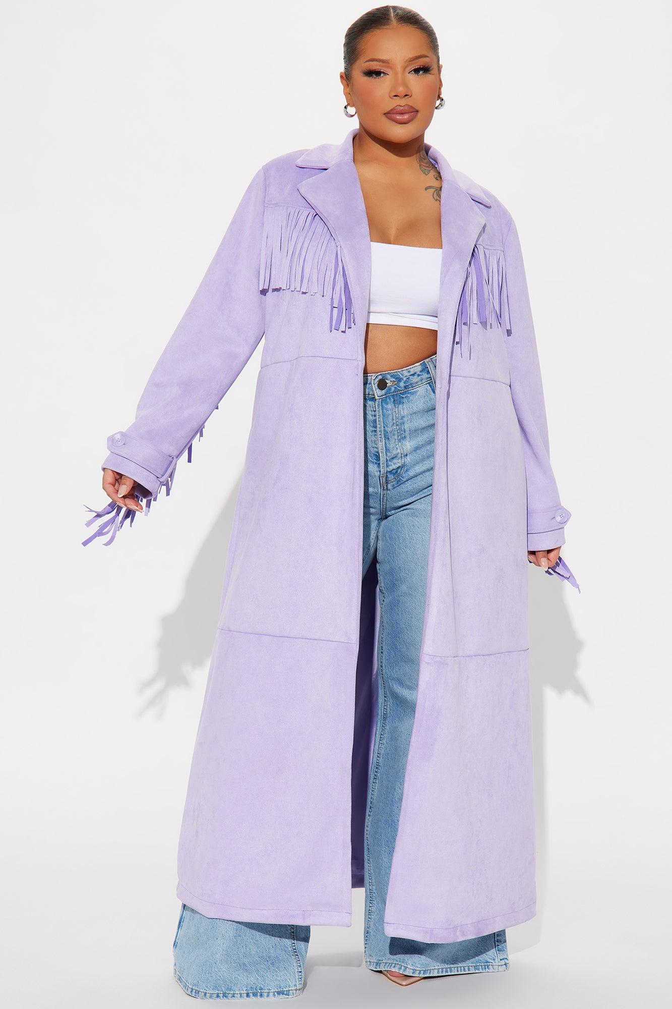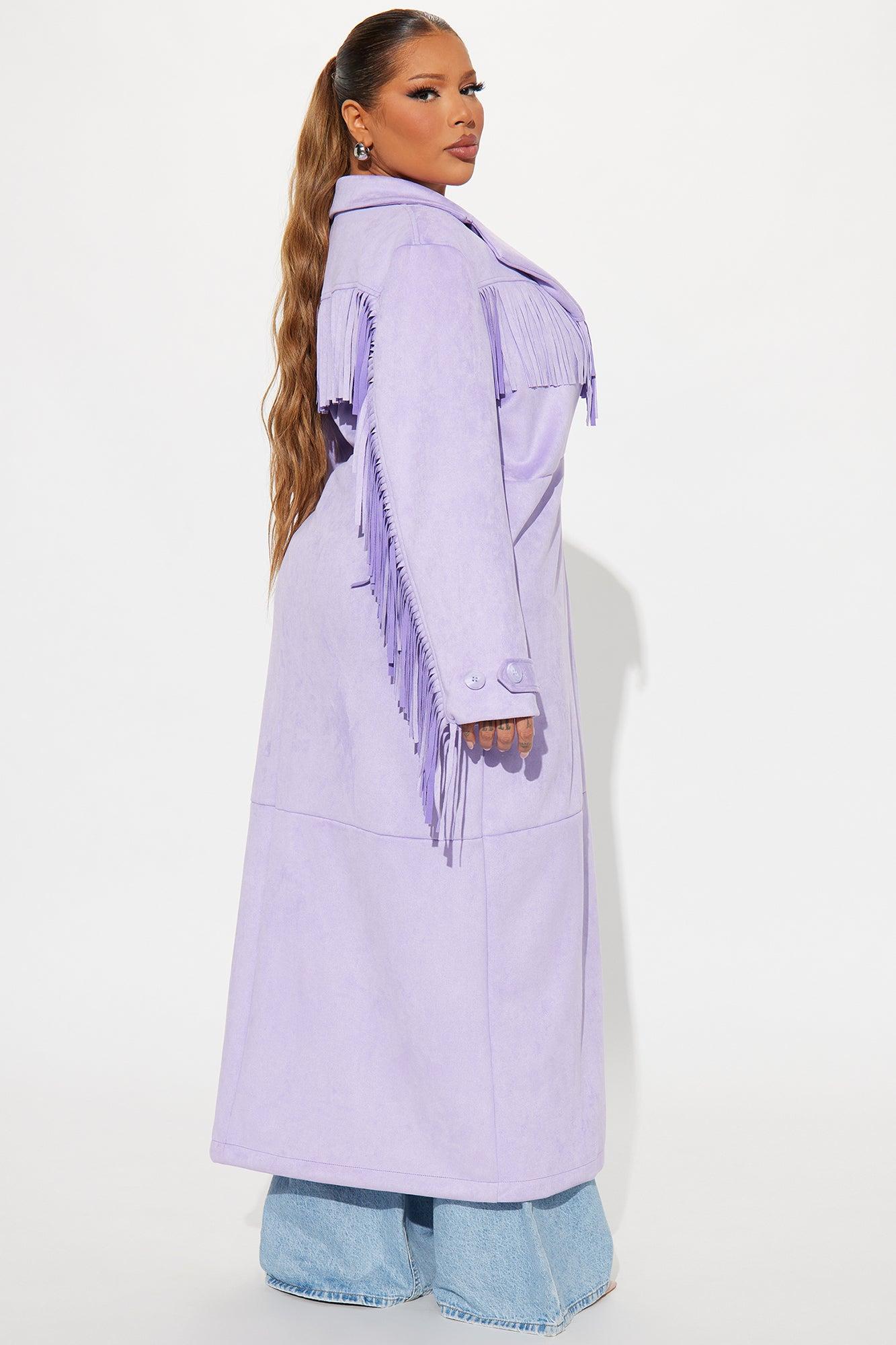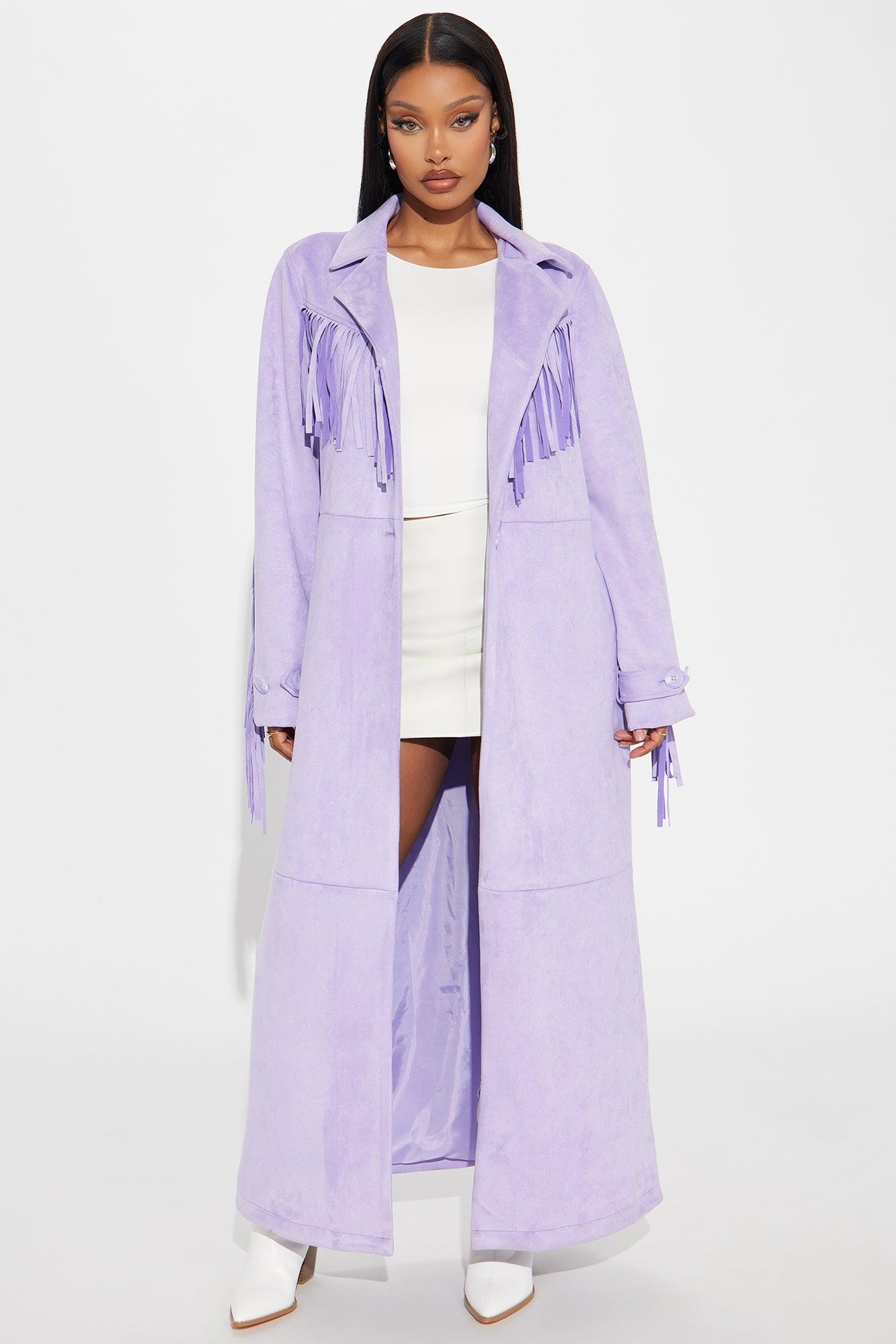 Available In Taupe And Lavender. Trench Collar Long Sleeve Faux Suede Fringe Trim Button Closure Fully Lined Shell: 96% Polyester 4% Spandex Lining: 100% Polyester Imported California Proposition 65 WARNING: Cancer and Reproductive Harm - www.P65Warnings.ca.gov.