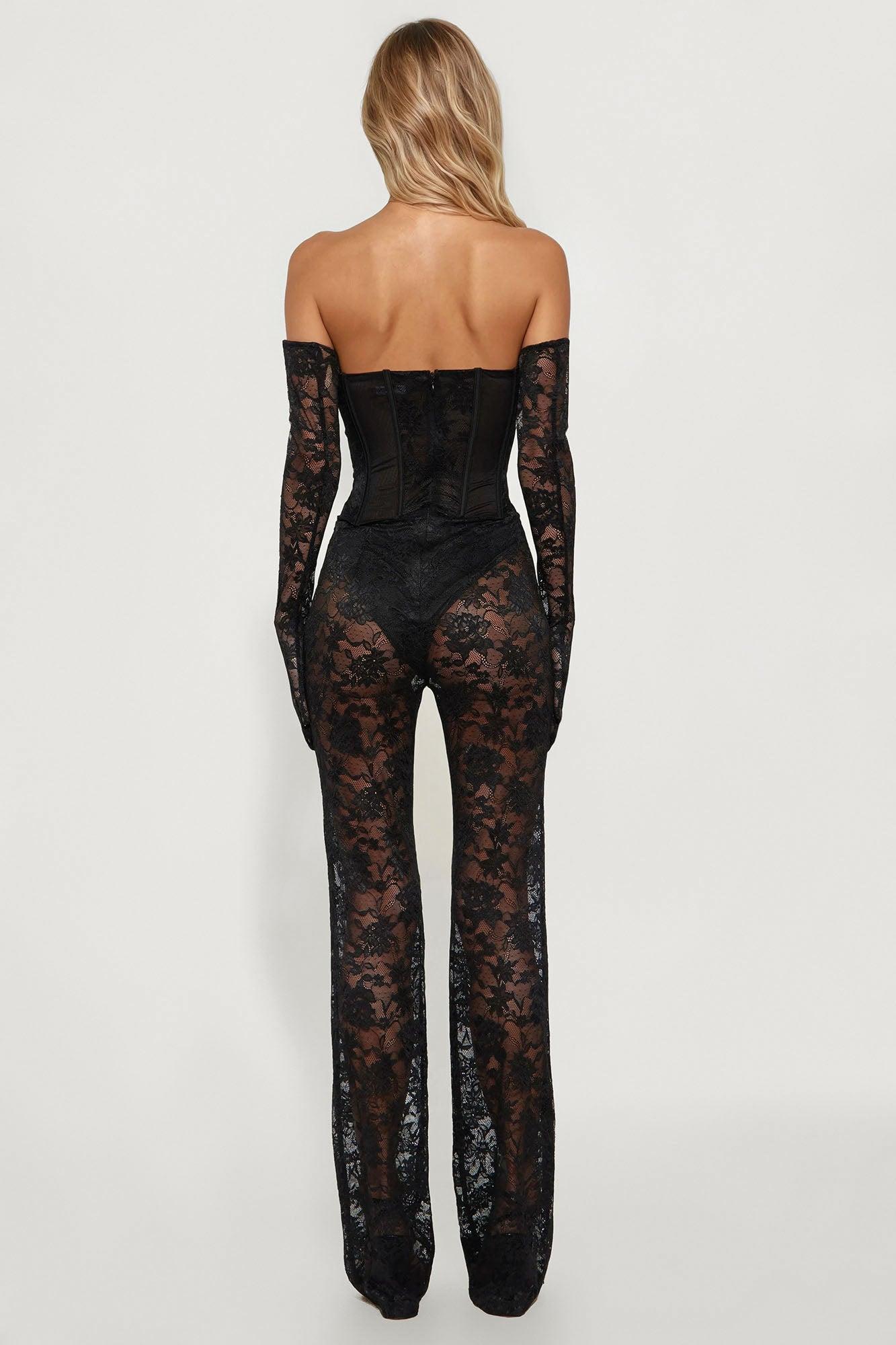 Available In Black And White. Jumpsuits Stretch Gloves Included Panty Lining Back Zipper Padding Straight Leg Inseam = 36" Boning Detail Shell 1: 90% Nylon 10% Spandex Shell 2: 85% Polyester 15% Spandex Lining 1: 85% Polyester15% Spandex Lining 2: 100% Polyester Disclaimer: Not Recommended For People With Sensitive Skin. Final Sale