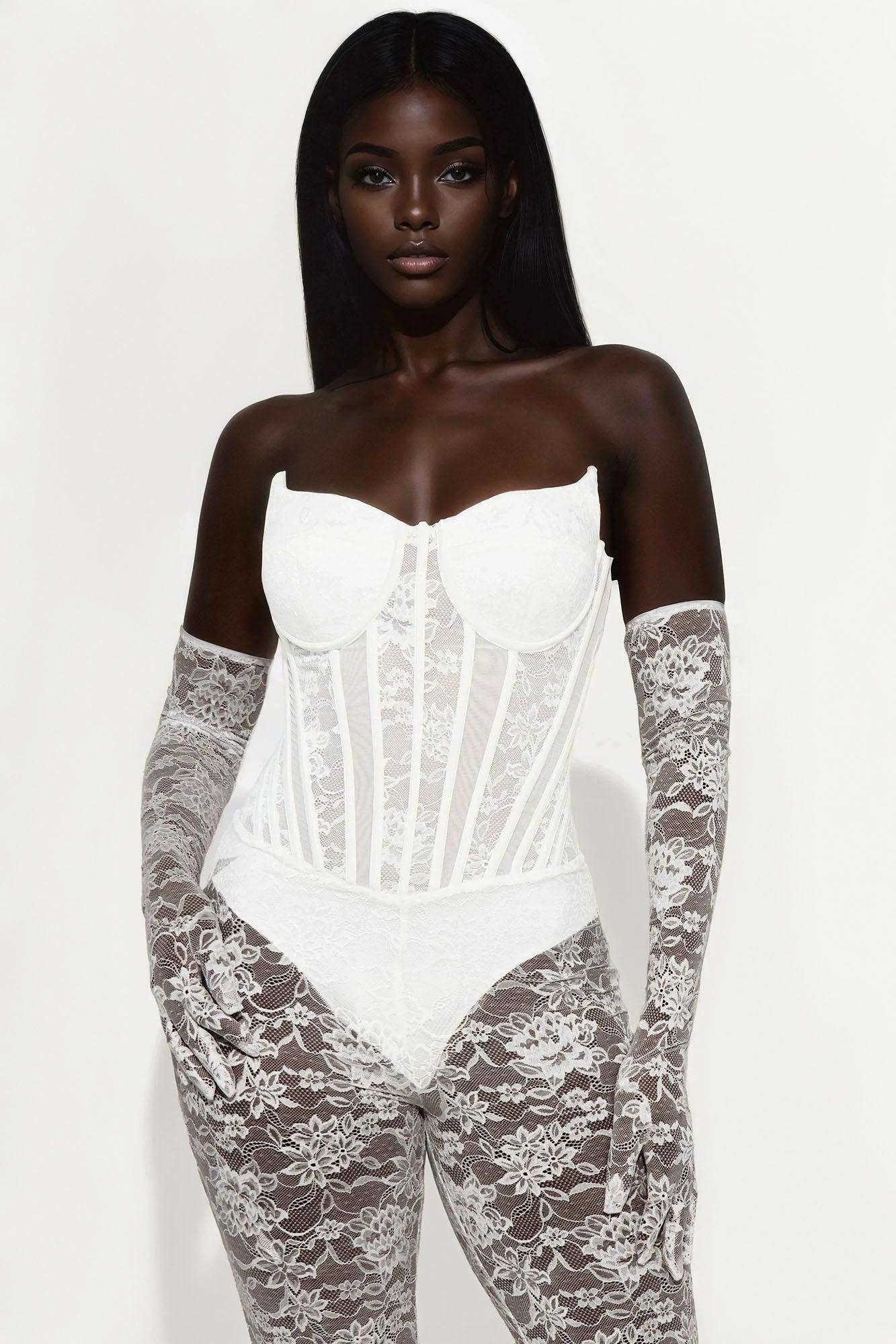 Available In Black And White. Jumpsuits Stretch Padding Boning Detail Gloves Included Panty Lining Back Zipper Straight Leg Inseam = 36" Disclaimer: Not Recommended For People With Sensitive Skin. Final Sale Shell 1: 90% Polyester 10% Spandex Shell 2: 85% Polyester 15% Spandex Lining1: 85% Polyester 15% Spandex Lining2: 100% Polyester