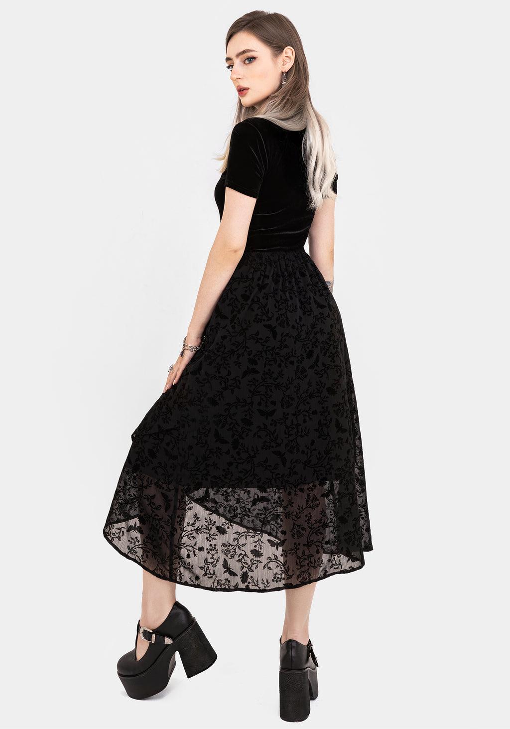 Black Flocked Midaxi Skirt